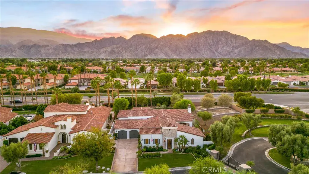 Nestled within the prestigious Norman Estates at PGA West, this meticulously maintained 3,040-square-foot home is a masterpiece of design and comfort. It offers an unparalleled lifestyle, combining modern luxury with the relaxed elegance of a resort. Every detail has been carefully considered to create a bright, airy, and inviting atmosphere, from the moment you step through the private, gated courtyard. The residence’s high ceilings and thoughtfully designed open-concept layout fill every room with an abundance of natural light, creating a sense of spaciousness and tranquility. The living room serves as the heart of the home, featuring a cozy fireplace for cooler evenings and seamless access to both the front and back patios, ideal for effortless entertaining. A culinary dream, the kitchen boasts a large central island, warm wood cabinetry, and sleek granite countertops. It is equipped with top-of-the-line stainless steel appliances, including a gas cooktop, catering to the most discerning of chefs. Retreat to the secluded primary suite, which offers direct access to the serene backyard. The en-suite bathroom is a spa-like sanctuary, featuring a lavish soaking tub, a walk-in shower, dual vanities, and an expansive walk-in closet. The home includes two additional en-suite guest rooms, ensuring ultimate comfort and privacy for visitors. One is located within the main residence, while the other is a detached casita accessed from the central courtyard. The home features a very impressive custom 72 bottle wine wall for your favorite vintage. The exceptionally large backyard is a private desert oasis, complete with a refreshing pool and spa. Multiple covered and uncovered patios offer ample space for al fresco dining, sunbathing, or simply relaxing while enjoying the breathtaking mountain and sunset views. Beautifully landscaped grounds are set against a magnificent backdrop of the Santa Rosa Mountains, providing a truly spectacular setting for both relaxation and entertaining. As a resident, you will enjoy all the exclusive benefits of the La Quinta Fairways HOA, including pristine community landscaping, enhanced security, and the peaceful, meticulously maintained environment that defines this sought-after enclave. This home truly offers the epitome of upscale, single-level living in the highly desirable PGA West Greg Norman area. Welcome Home.