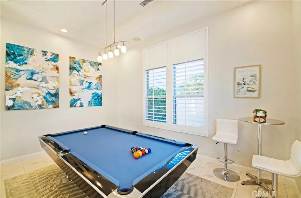 The backyard is designed for ultimate relaxation and entertainment, boasting a pool, spa, firepit seating area, and lounge chairs. For added comfort, there’s a separate seating area with misters for hot days, a fireplace, a propane gas grill, and a large screen TV perfect for enjoying your favorite sports events. This 4-bedroom, 4.5-bathroom home includes six smart TVs and surround sound throughout, ensuring a high-end vacation experience. The property features two en-suite bedrooms in the main house and two additional en-suite bedrooms in the detached casita. The open floor plan includes a bar with a separate ice machine, a billiards room, and a spacious kitchen. The family room is equipped with an 80-inch TV and a fireplace for cozy movie nights.