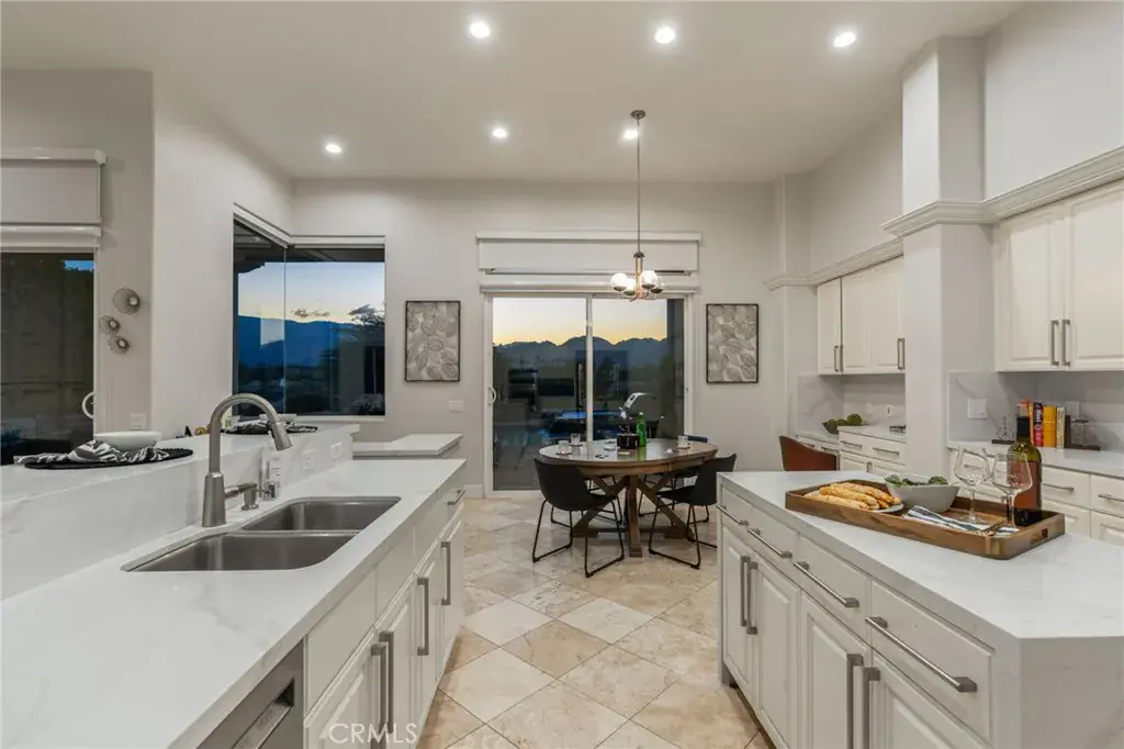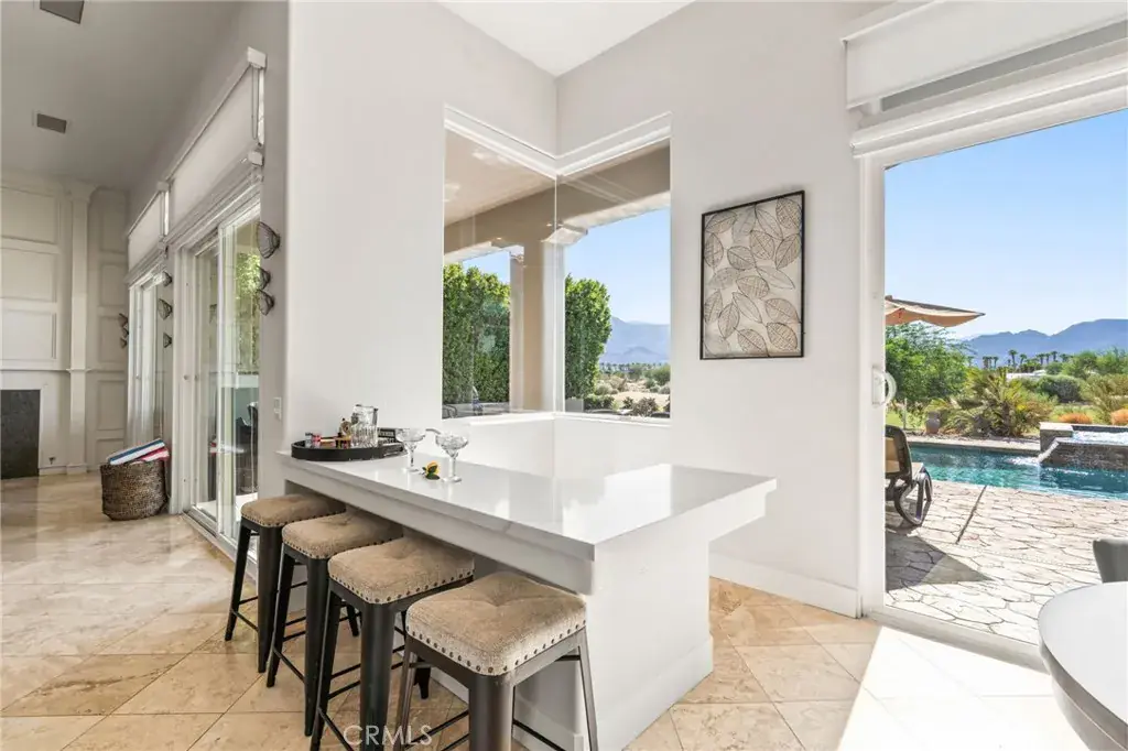 Nestled within the prestigious PGA West community, this exceptional residence offers an unparalleled desert lifestyle with breathtaking, unobstructed views of the Santa Rosa Mountains and the 6th fairway of the acclaimed Greg Norman Golf Course. A private courtyard entry welcomes you into an expansive open-concept floor plan designed for both comfortable living and effortless entertaining. The chef’s kitchen is a standout, recently updated with new countertops and featuring top-of-the-line stainless steel appliances, a double island, walk-in pantry, and sunken bar—ideal for hosting and culinary enthusiasts alike. The home showcases freshly painted interiors, elegant travertine flooring, and custom built-in cabinetry throughout. The spacious primary suite provides a peaceful retreat, while walls of sliding glass doors in the great room frame stunning golf course and mountain views, seamlessly blending indoor and outdoor living. The backyard is a true desert oasis, complete with brand-new artificial turf, a saltwater pool with new Pebble Tec finish, spa with beach entry, BBQ area, firepit, and outdoor dining space—perfect for enjoying spectacular desert sunsets with family and friends. Additional features include smart home automation with Wi-Fi thermostats, smart door locks, and mobile app-controlled pool and spa. Offered turnkey furnished, this home combines luxury, comfort, and modern technology in one of the desert’s sought-after golf course communities.