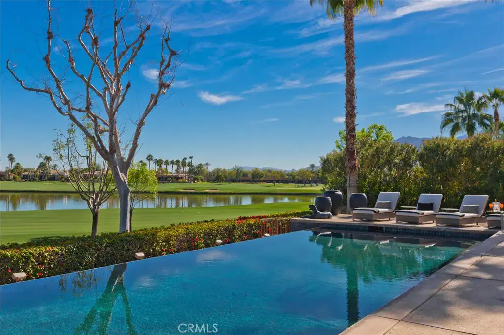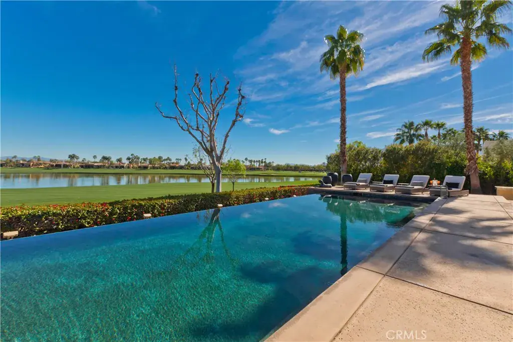 An estate of the grandest proportions awaits the discerning guest at “The Summit” in one of the most sought after and exclusive guard gated communities of PGA West. This home was recently featured on the first episode of the tv show Staycation which aired on CBS and KCAL 9. Its lake front facing exposures has it all with complete privacy at this 4-bedroom, 4.5 bath estate with triple fairway views of the 10,11,12th golf course holes on the Weiskopf course, lake and mountain views. Arrive, relax and begin to enjoy the 4900 sqft luxurious Restoration Hardware decorated home. This home was purposefully designed to create the ultimate vacation destination with premium amenities such as the infinity saltwater pool, cascading waterfall and spillway and spa, built-in BBQ island, foosball, ping-pong and more!
