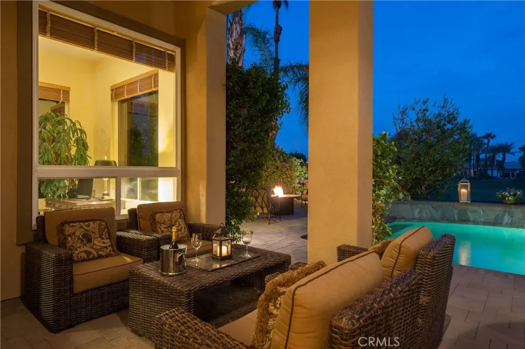 This home offered for monthly rental is an entertainer’s dream. Located on the 13th fairway of the Jack Nicklaus Tournament Course at PGA West. With luxury indoor and outdoor living areas and four en-suite bedrooms, this property is great for a trip to the desert or a golf outing with family and friends. Upon entrance you will find a formal living and dining room (seats 8) with cathedral ceilings and a wet bar. The family room has a large TV with cable and a functional fireplace. The fully equipped kitchen has granite countertops, dual ovens and a large breakfast bar and table for four. The spacious outdoors of this home allows you to soak up the La Quinta sunshine in the backyard living area with a saltwater pool with a tanning shelf, hot tub, and a covered terrace with ceiling fans, outdoor table for six, a built in BBQ and a firepit. Every bedroom boasts high end luxurious items such as Frette linens, Roam toiletries and two bathrobes in each room. In addition, there is high speed internet and smart TV’s in all of the bedrooms and family room. There are three bedrooms in the main house. The master bedroom boasts a Cal King bed, as well as a desk and office area. The bathroom features dual sinks, tub, shower and a very large walk-in closet accessible from two entrances. The secondary bedroom has a queen bed and an en-suite bathroom with a shower. The third bedroom has two twins with their own en-suite bathroom that has a shower. The detached casita is located to the left off the private courtyard and has it’s own private entry. The casita has a Cal king bed, en-suite bathroom with a shower, and a walk-in closet and cable TV. Every January, the PGA Tour hosts the American Express Golf Tournament at PGA West and they use this course. Imagine watching professional golfers from the backyard with your own private viewing area. Monthly Rent Schedule is as follows: January – March: $20,000; April: $15,000; May: $12,000; June – August: $8,000; September: N/A; October: $12,000; November-December: $15,000.