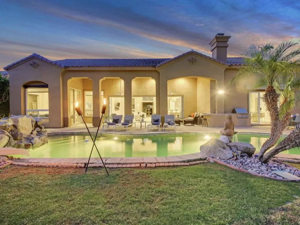 New to the Market + Available April 2026 ONLY! This stunning property overlooks the renowned PGA West Legends golf course. This home features 4 bedrooms, 5 baths including a detached casita which boasts it’s own private bedroom, bathroom en suite and kitchenette. Enjoy our desert nights with indoor/outdoor resort living. Glass wall sliders open to a pool/spa, BBQ, outdoor bocce in the courtyard. Open concept living with lots of lounge space and a wet bar area. Private enclosed courtyard for privacy. The primary bedroom suite features an oversized sitting area, and large walk in closet. Located in close proximity to Ernie’s Restaurant. Pets by application. Rate includes HOA dues, $200 utility allowance per month, 24 hour patrolled gated security, landscape and pool maintenance. Only available April 2026 for one full month.
