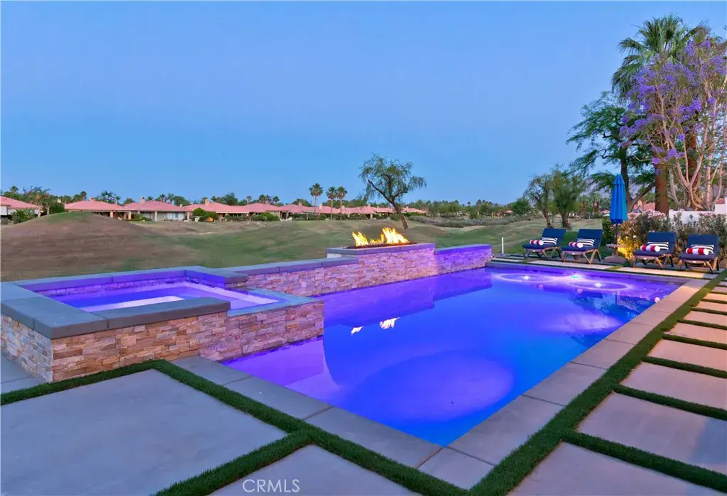 Nestled on the 8th fairway of the famous Jack Nicklaus Private Course of PGA West is our newly remodeled Casa Havana, a stunning 3,000 sq. ft. Contemporary Estate perfect for entertainment and relaxation. The professionally designed Casa Havana features 4 bedrooms, 5 bathrooms (each with a private en suite), a brand new pool and spa with 3 unique waterfalls, and a fire pit. The pool includes a tanning shelf with colored bubblers for all ages. Enjoy sunset dinners with the built-in stainless steel BBQ and sink. A full 3-hole putting green stretches across the property. With custom white-washed Brazilian wood floors and Spanish-style exterior ceiling fans, this home stands out in the enclave of 75 golf course homes within PGA West. Stainless steel appliances, en suite bathrooms, and 65” flat-paneled high-definition TVs with Netflix complete the upgrades. Relax on the extensive patio with a custom-built mister system and enjoy wireless internet coverage throughout the property. The 20-foot vaulted ceilings in the living room add to the memorable experience.