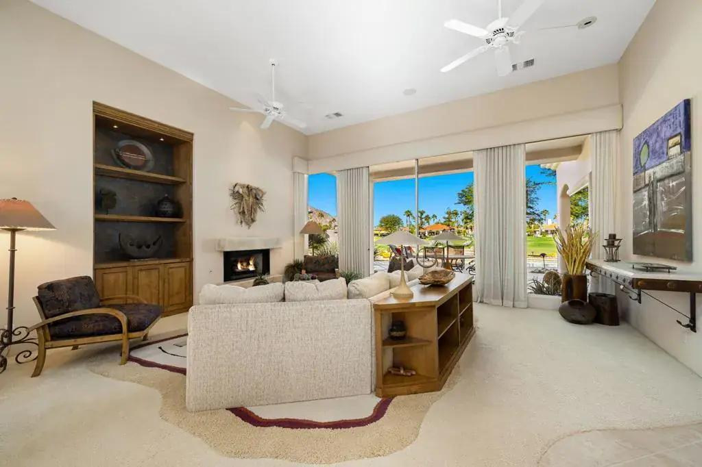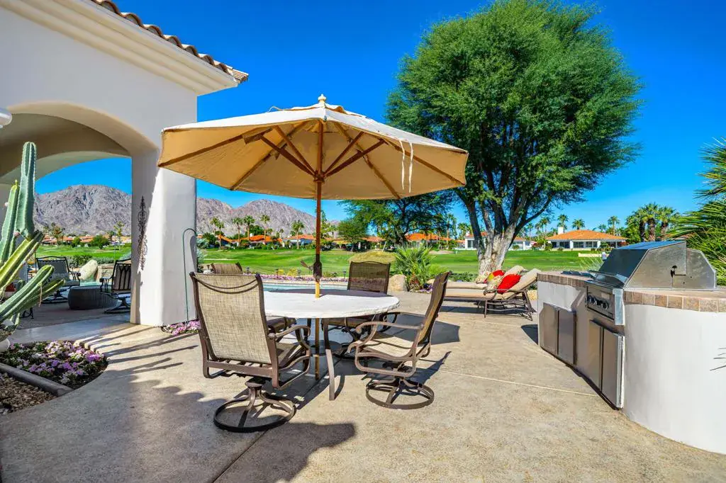 Welcome to the epitome of desert luxury at this beautifully appointed PGA West residence, perfectly positioned on the 13th & 14th holes of the Jack Nicklaus Private Course. With panoramic fairway, and mountain views, this home captures the best of La Quinta’s resort lifestyle.Step inside to an expansive open-concept floor plan where soaring ceilings, large picture windows, and a neutral palette flood the space with natural light. The great room features a custom built-in entertainment wall, cozy fireplace, and seamless flow into the formal dining area and chef’s kitchen–complete with rich maple cabinetry, granite slab counters, stainless appliances, and a breakfast nook overlooking the pool and golf course.The home offers four spacious bedrooms and four baths, including a detached casita (added by the owners) for guests–bringing the total living space to approximately 3,308 sq ft. Every detail was designed for comfort and livability: plantation shutters, Solatubes, a Culligan water-softening system, insulated garage doors, epoxy-coated flooring, and an A/C-equipped garage. The property is serviced by three air-conditioning units, one of which was recently replaced. A new water heater (2025) and updated pool pump add peace of mind.Outside, enjoy resort-style living with a sparkling pool and spa, a custom putting green, artificial turf for low-maintenance beauty, resurfaced front & rear patio, and covered outdoor living areas that showcase the Santa Rosa Mountains in full view.Sold turnkey furnished, this exceptional Hermitage home blends sophistication and serenity–the perfect retreat for entertaining or peaceful desert living.