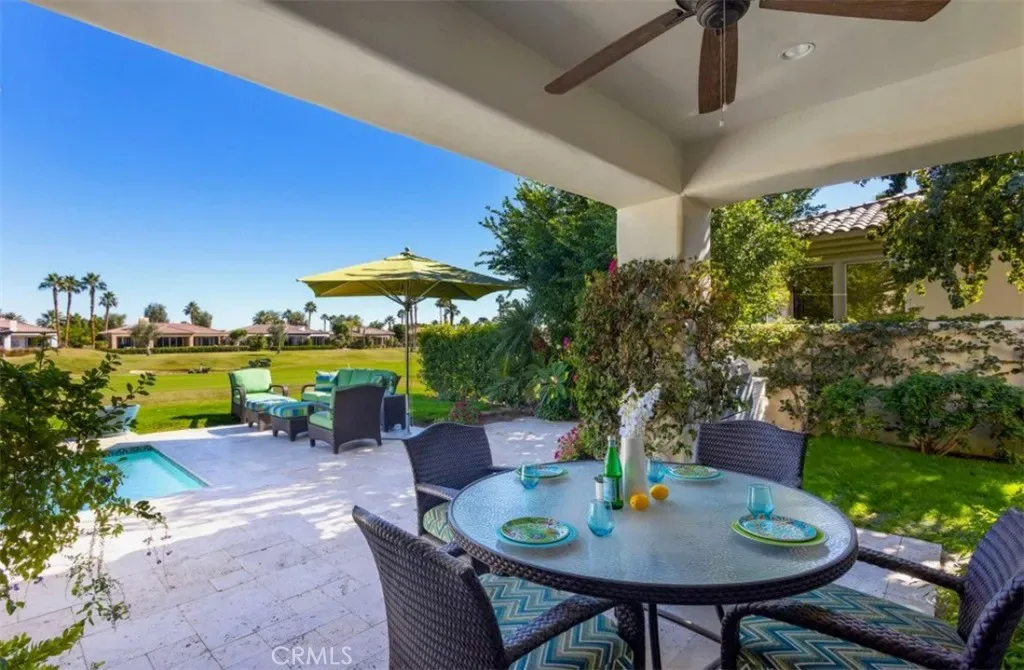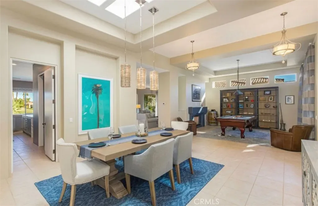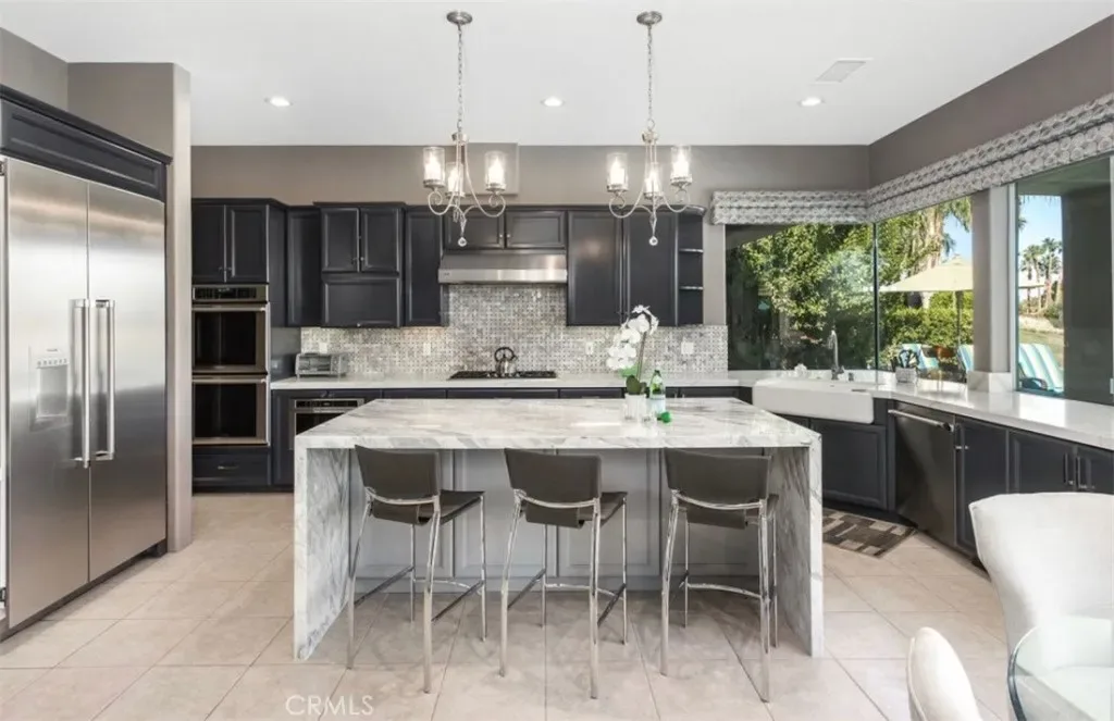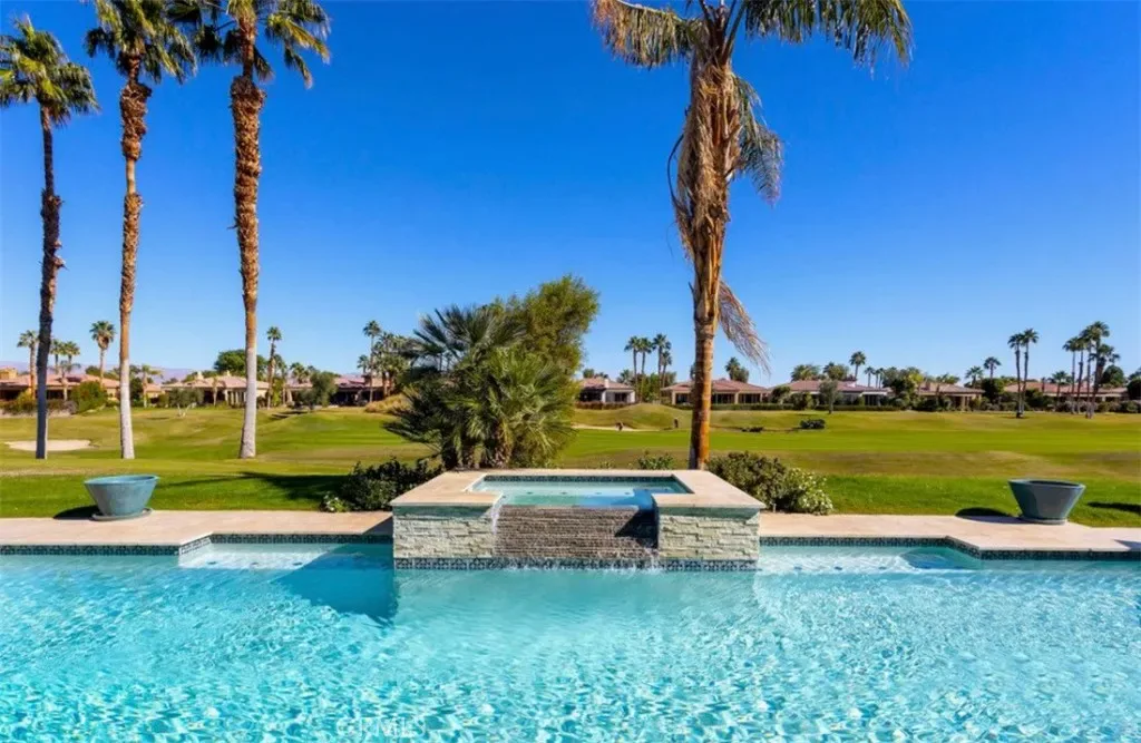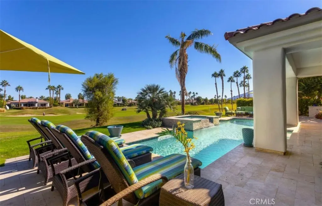 Stunning luxury home ~ an updated Heritage 3 plan overlooking the 4th fairway of the Nicklaus Tournament Course at the exclusive PGA West resort! Enter through the iron gates to a large and inviting private courtyard with lush landscaping, built-in fire pit & stunning views of the Santa Rosa Mountains! Step inside to the foyer taking you into the formal living area with double sided fireplace, tile flooring all overlooking the formal dining area with custom lighting, skylights & wet bar with wine fridge! Gorgeous remodeled culinary kitchen offering spacious island with waterfall marble countertop, new cabinetry, quartz counter tops, stunning backsplash, gas cook-top, stainless Thermador appliances, double ovens & farmhouse sink all adjoined to the breakfast nook & family room! Large main suite with sitting area, double vanity, soaking tub, walk in shower & walk in closet. Your guests will feel right at home as both secondary rooms have their own remodeled en-suites. Outdoor entertaining at it’s finest with stone decking offering ample patio space for dining and lounging by the remodeled pool & spa with beautiful Travertine stone finishes that carry over to the built in BBQ island! Indoor entertainment includes large screen TV’s and fun billiard table! Plenty of additional space with 3 car garage and driveway! Watch the pros play the American Express Golf Tournament from the backyard pool! Just 10 minutes away from the Polo Grounds hosting Coachella and Stagecoach! Only 20 minutes to the BNP Paribas Tennis Tournament! A tranquil and quiet oasis in the desert welcoming you home for your long term vacation getaway! Don’t miss this one! WELCOME TO SOCAL FIRE VICTIM FAMILIES WITH CONSIDERED MONTHLY DISCOUNT RATE!