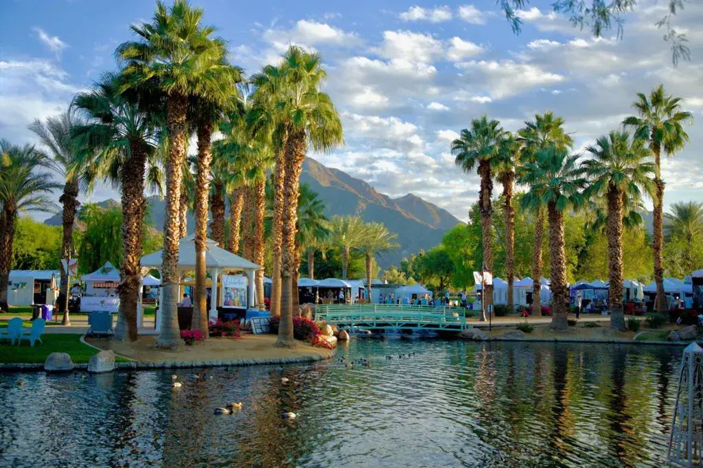 Available for the season 2025-2026. Welcome to your dream getaway nestled on the 7th fairway of the prestigious Arnold Palmer Private Golf Course! This charming 2-bedroom, 2-bath Condo boasts breathtaking views of the Fairway, Lake and Mountains making it a perfect retreat for relaxation and entertainment.As you arrive, you’ll be greeted by a private gated courtyard featuring a tranquil fountain, outdoor dining for 6, and a convenient BBQ grill–ideal for al fresco meals. Step inside to a bright and airy open floor plan full of natural light, thanks to the soaring vaulted ceilings. The inviting living room offers a cozy fireplace and a wet bar, creating a perfect setting for unwinding after a day on the course and Dining area comfortably seats 4 and sliding doors that open to the patio, enhancing the seamless indoor-outdoor flow. The well-appointed Kitchen showcases custom cabinetry, modern appliances and a breakfast counter for casual dining. Adjacent to the kitchen, you’ll find a cozy den complete with a TV. The Primary Suite includes a King-size bed and 2 closets, 2 sinks and large Shower. The Guest bedroom is warmly appointed with two twin beds and 2nd bath. Laundry inside. The Private Patio is complete with a Firepit and stunning views of the Lake and Mountains. Community pool is just steps away. Conveniently located minutes from the exciting American Express PGA golf tournament, Paribas Tennis, Shopping & Dining options in Old Town La Quinta.