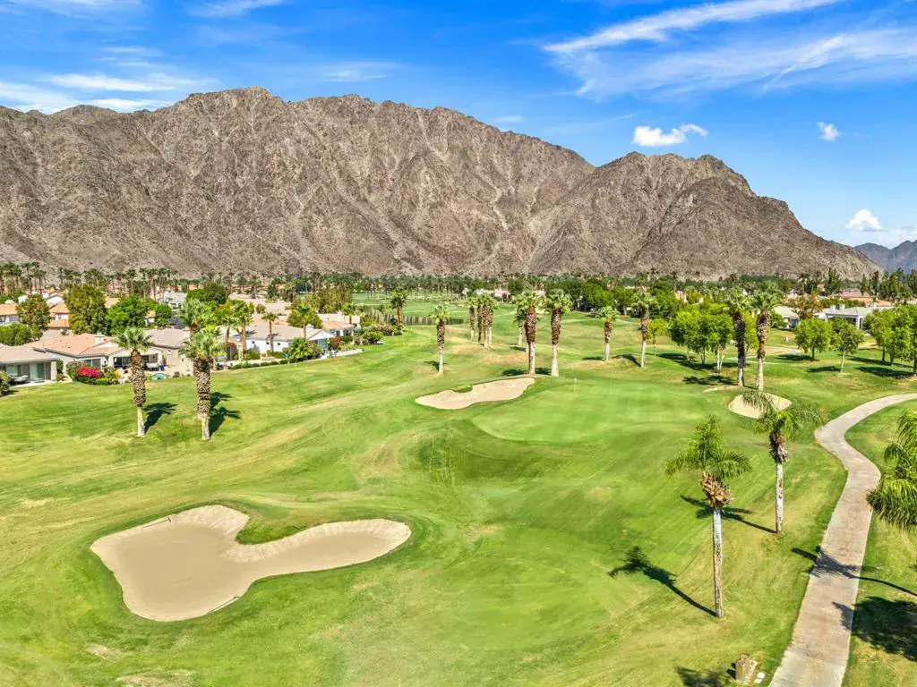 Welcome to a serene desert retreat at 54575 Shoal Creek, La Quinta, CA nestled within the prestigious PGA Palmer Private community. This one story 1,549 sq foot home is a perfect blend of comfort and luxury. This home features 2 spacious bedrooms and 2 beautifully appointed bathrooms. Enjoy the convenience of having a washer and dryer in the unit. Upon entering you will be greeted by an open-concept layout that seamlessly connects the living and dining areas. The large kitchen is equipped with modern appliances and ample storage. Step outside your patio to a private outdoor space, where you can barbeque and savor a lush golf course, tranquil landscaping and magnificent mountain views. For those warm desert days, take a dip in the community pool or lounge on one of two patios at the property. The two car garage and driveway adds ease of living for you and your guests at this beautiful home. Contact us today to schedule a private viewing. Experience the best of California desert living at 54575 Shoal Creek, La Quinta.