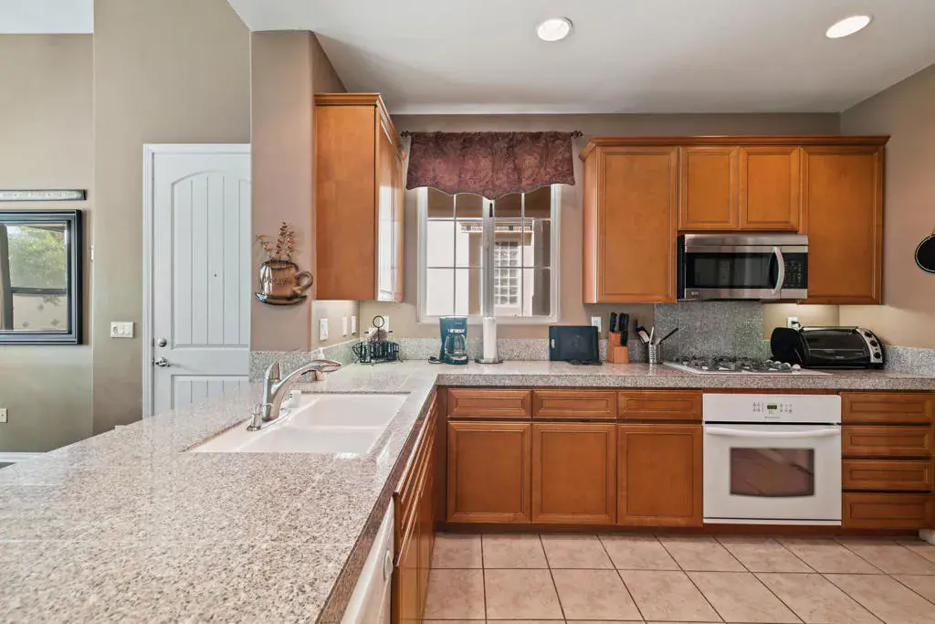 Booked Jan -April 2026 You will enjoy the Lush Landscaping with extended Designer Pavers in the patio to give a larger entertaining backyard, beautiful custom Built in BBQ with tile accent bar seating area, Fire Pit, Accent Tiles on the Wall, Auto sprinklers and completely low maintenance allowing you to enjoy Your Mountain Views from the patios, living areas and Master Bedroom! Custom Window coverings This Gated Community, w/Clubhouse, Pool, Spa, Tennis, Bocci Ball and Intimate Courtyards gives you the charm of an Old World Spanish Manor. This home features Granite Counter Tops in the Kitchen, Fireplace, and Covered Patio. Great Charm and Elegance! King bed in Master, Queen beds in other 2 bedrooms. Nestled by PGA West and near the new Silver Rock Resort, Municipal Golf Course. A nice bike ride away are two new shopping areas in development at 58th and Madison and 60th and Monroe. A great vacation spot! !