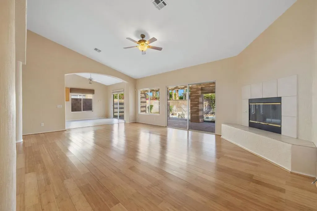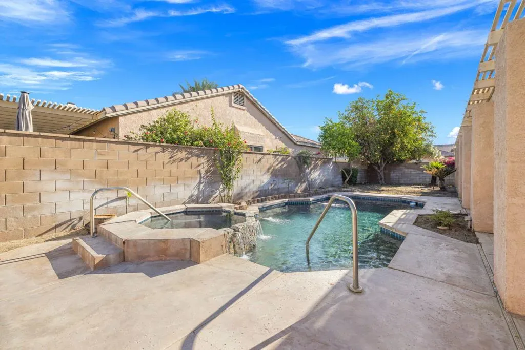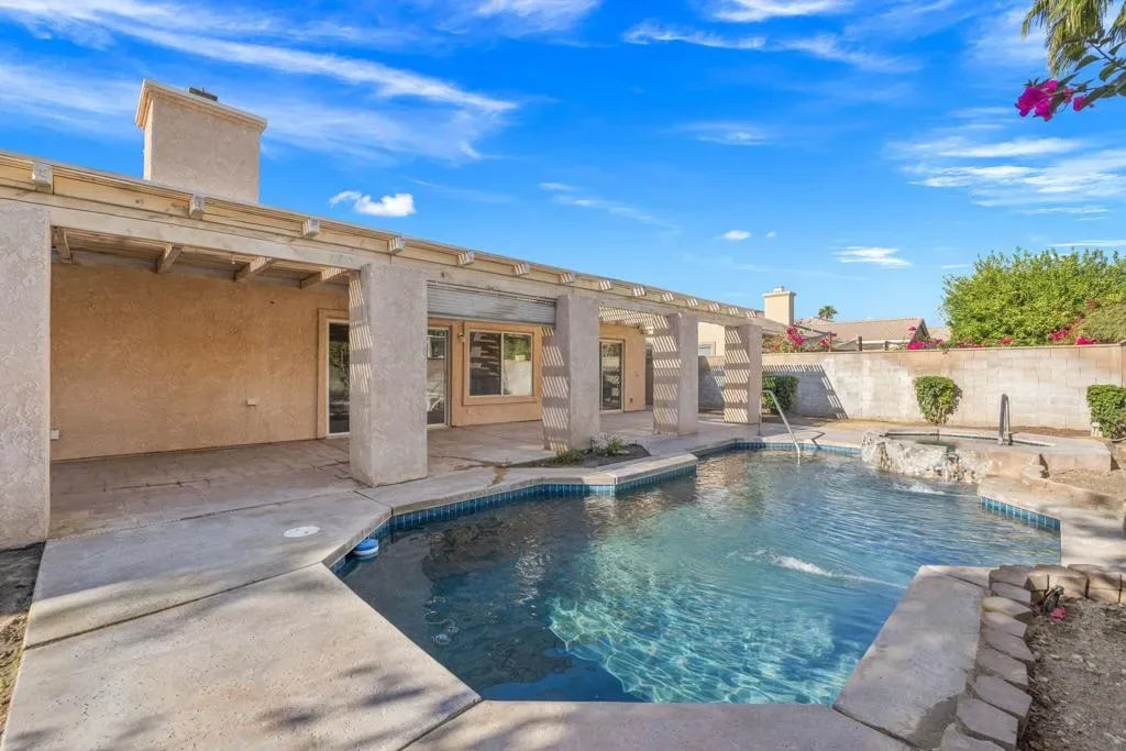 Welcome to your dream home in the highly desirable city of La Quinta! No HOA! This beautifully designed 3-bedroom, 2-bath single-family residence offers an open living area with a cozy fireplace and a wall of windows showcasing views of your private pool and spa perfect for relaxing or entertaining. Rare 3 car garage. The formal dining area is elegantly defined by distinctive columns, while architectural details like bull-nosed corners and dramatic pot shelves add character throughout. The spacious kitchen features a breakfast area, breakfast bar, upgraded maple cabinetry, and Corian countertops. The luxurious primary suite includes a double sink vanity, soaking tub, and separate shower. Located in a top-rated school district and benefiting from lower electrical costs through IID, this home combines style, comfort, and efficiency in one exceptional offering.