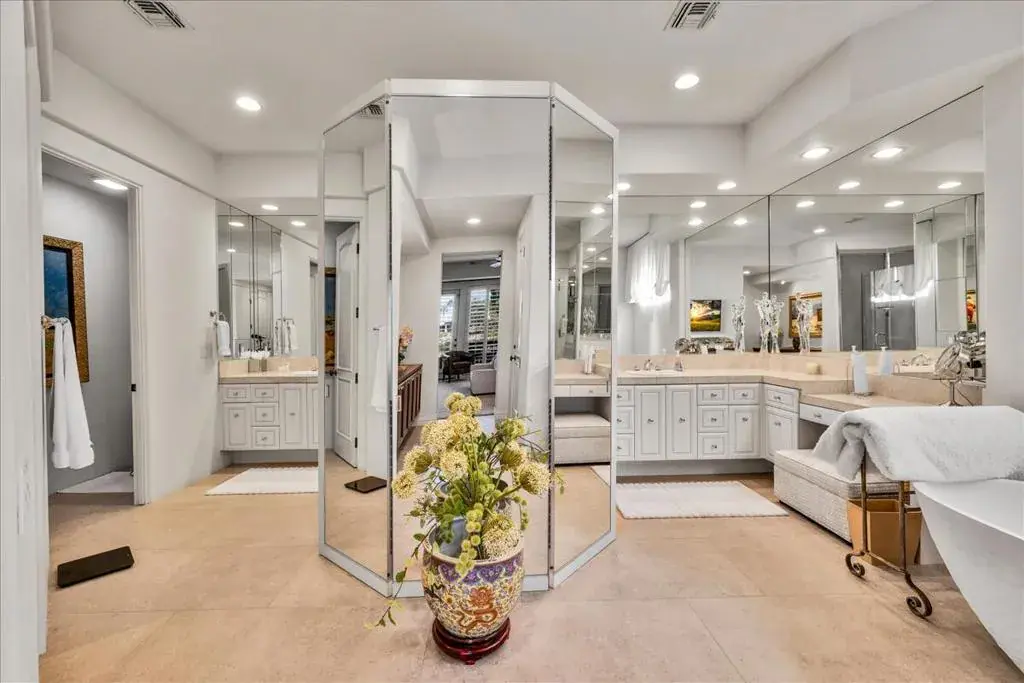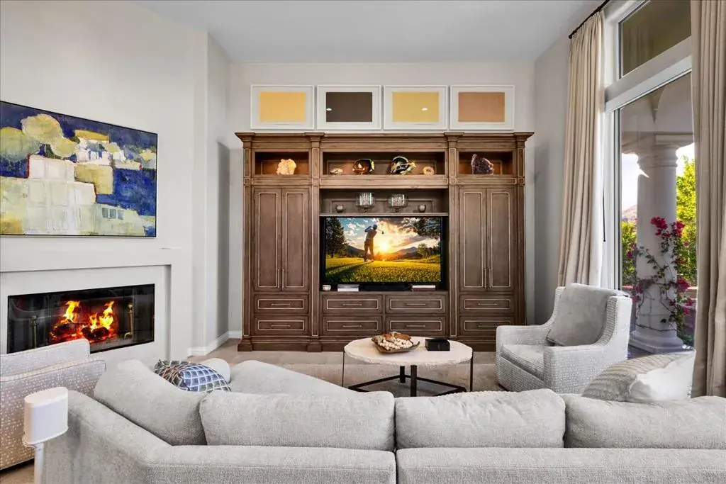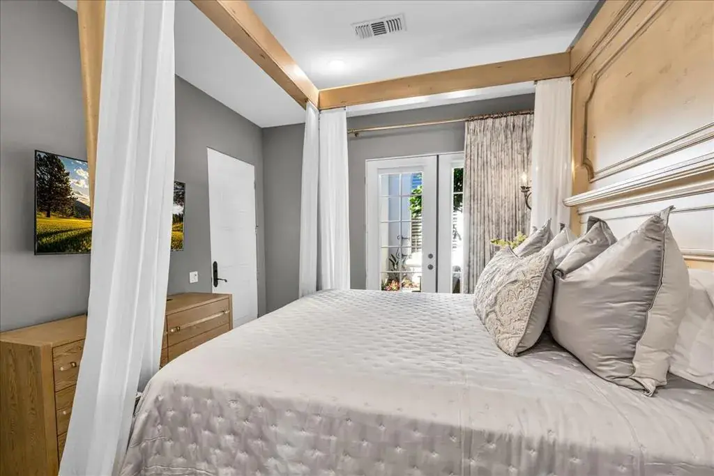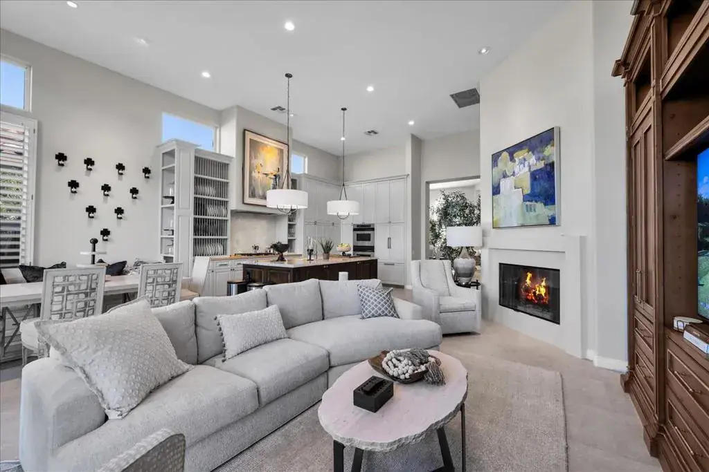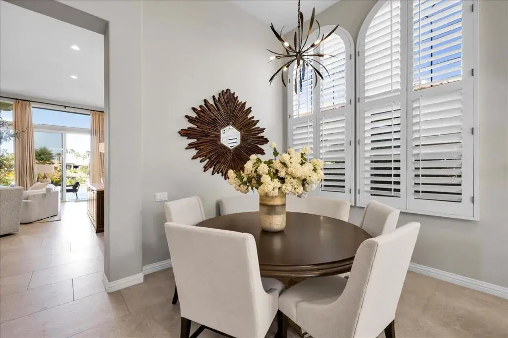 Set within the gates of Rancho La Quinta, this newly renovated Encanto II offers over 3,200 square feet of effortless indoor-outdoor living. Thoughtfully redesigned with clean, modern influences and finishes, the home offers relaxed and refined comfort. The main residence features three spacious bedrooms each with its own ensuite bathroom, while the detached two-room casita provides additional privacy for guests, complete with a Jack and Jill bath and built-in kitchenette–ideal for extended guests. The kitchen has been updated with custom cabinetry, a statement range hood, high-end appliances, and a sophisticated blend of marble and butcher block surfaces. Positioned along the 1st fairway of the Pate Course, the rear patio captures sweeping southwest mountain views. The outdoor living space is designed for both quiet mornings and relaxed evenings, complete with pool and spa, mature fruit trees, and a generous built-in fire feature. Offered turnkey with curated furnishings, accessories, and art, this home is well-suited for those seeking a beautifully appointed seasonal retreat within one of La Quinta’s most established golf and lifestyle communities.
