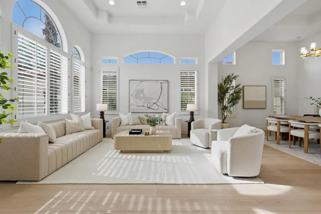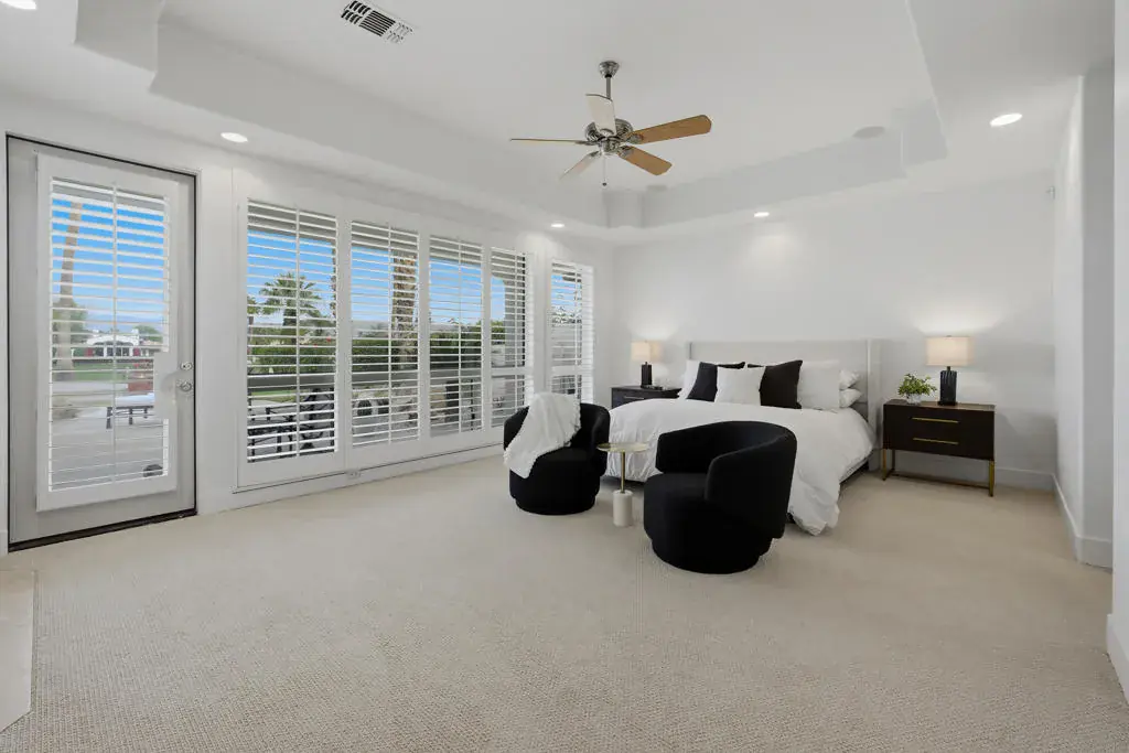 Simply Stunning! There is no better way to describe this masterfully remodeled estate in the prestigious Rancho La Quinta Country Club. Positioned on an expansive, elevated 13,000 sq. ft. lot, this 3,556 sq. ft. residence offers commanding views of the serene lake and the lush fairways of the Jerry Pate course.Renovated from the from the front gate to the back of the lot, the home exudes bespoke luxury. A uniform design palette of creamy whites, rich textures, and perfect proportions creates a seamless transition between the interior and the exterior. Inside, natural wood-look luxury plank flooring leads you to a chef’s kitchen featuring soft-close cabinetry, quartz countertops, and a striking backsplash that soars to the ceiling. The adjacent great room, anchored by a custom bar with herringbone detailing and gold hardware, features a massive new slider that invites the outdoors in.The grounds have been reimagined for the ultimate entertainer, featuring a putting green, a firepit, and multiple social zones including an outdoor fireplace and a romantic sunset viewing area. The primary suite offers a professionally designed closet, while the handsome double-door office provides a built-in workspace and a hidden Murphy bed. Guests will enjoy total privacy in the detached casita, complete with its own fireplace and kitchenette. Professionally furnished and turnkey-ready, this is desert living at its finest.Interior HighlightsGourmet Kitchen: New quartz surfaces, designer cabinetry, and high-end finishes.Great Room: Features a custom floor-to-ceiling herringbone bar and seamless slider-door access to the patio.Versatile Spaces: Executive office with custom built-ins and Murphy bed; primary suite with a designer walk-in closet.Guest Casita: A private, free-standing retreat with a kitchenette and fireplace.Outdoor OasisElevated lake and fairway views framed by the Chocolate Mountains.Newly expanded social spaces including a BBQ bar, firepit, and putting green.Refined landscaping and hardscaping mirror the home’s interior sophistication.Available professionally furnished (outside of escrow), this estate is ready for its next chapter. Join us for an Exclusive Viewing: Sunday, Feb 1st, 12-3pm.