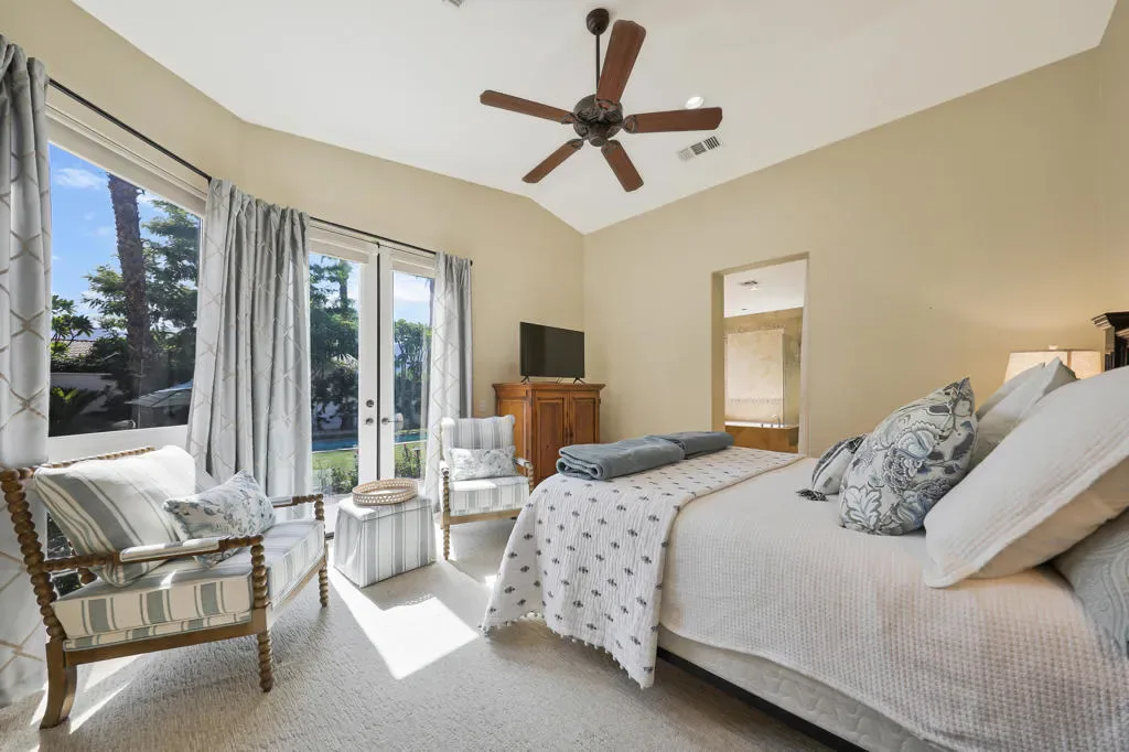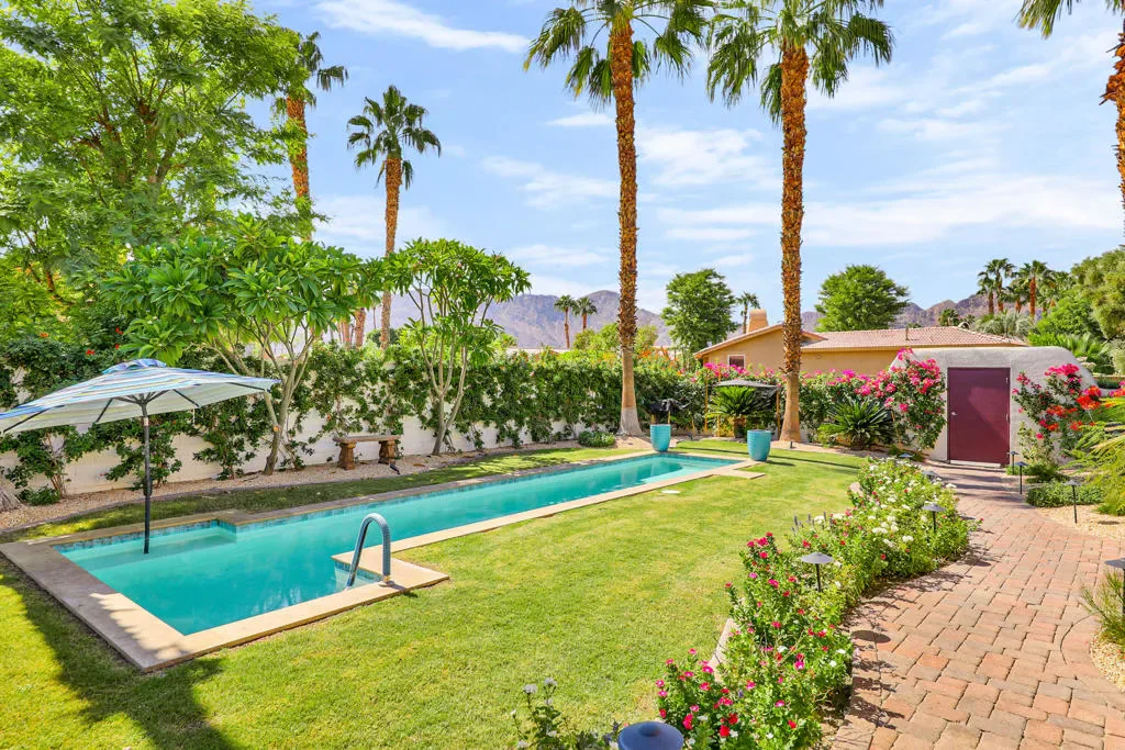 Welcome to the perfect desert retreat and an unbeatable lifestyle. AVAILABLE for APRIL! This stunning home offers 3-bedrooms, and 2 bathrooms in Rancho La Quinta Country Club. Features include breath taking views of the Santa Rosa mountains from the front and back yard. Step outside to your own private resort style oasis featuring a salt water pool, lush and tropical landscaping, privacy and serene, a beautiful patio area for your outdoor entertaining, along with a BBQ for those nights you want to enjoy the good life!. The Interior features an upgraded kitchen with granite countertops, stainless steel appliances, and a breakfast bar. The main Living room area boasts elegant Versailles- pattern travertine flooring, and features a beautiful focal point fireplace. The bedrooms are carpeted comfortably and furnished chic and stylish. The Master bedroom has a private en-suite with a soaking tub and shower, and upgraded with granite counters and travertine floors. This home is available for seasonal lease March and April 2026. Come enjoy the beauty of Rancho La Quinta Country Club for your next relaxing vacation! This home is ideally located in the heart of La Quinta. Walk or bike to Charming Old Town, and the famous La Quinta Resort, plenty of hiking trails, and close by are world renowned golf courses, you will find top rated restaurants & vibrant entertaining. Just minutes away you will discover El Paseo shopping district and the BNP Tennis tournament is just down the street.Call me for your private showing today! Lease terms are for 30 days!