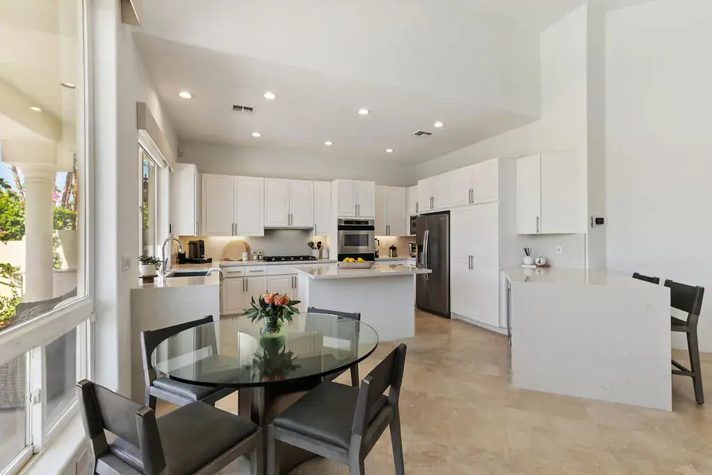 This exquisite 4 bdrm 3.5 bath is nestled in the prestigious Rancho La Quinta Country Club, offering breathtaking views of the serene lake and fairways on the world renowned Pate course. Step inside this elegant home complete with a spacious open floor plan, adorned with high ceilings and an abundance of natural light. The gourmet kitchen is a chefs delight featuring top of the line appliances, double wall ovens, twin bar fridge, breakfast area and a large island perfect for entertaining guests. The living area is an oasis of comfort with a cozy fireplace and large windows that showcase the picturesque views of the San Jacinto mountains and the inherent majesty of Rancho La Quinta. This stunning home is a perfect combination of luxury and comfort with ample sleeping arrangements including 2 king size beds, 1 Queen and 1 double bed. Step outside onto the expansive patio where you’ll find the perfect setting for outdoor entertaining or relaxation. Take a dip in the salt water pool or spa, or simply bask in the sun while enjoying the picturesque views that surround you. Don’t miss this opportunity to experience a true oasis of tranquility and sophistication. Please call for Availability