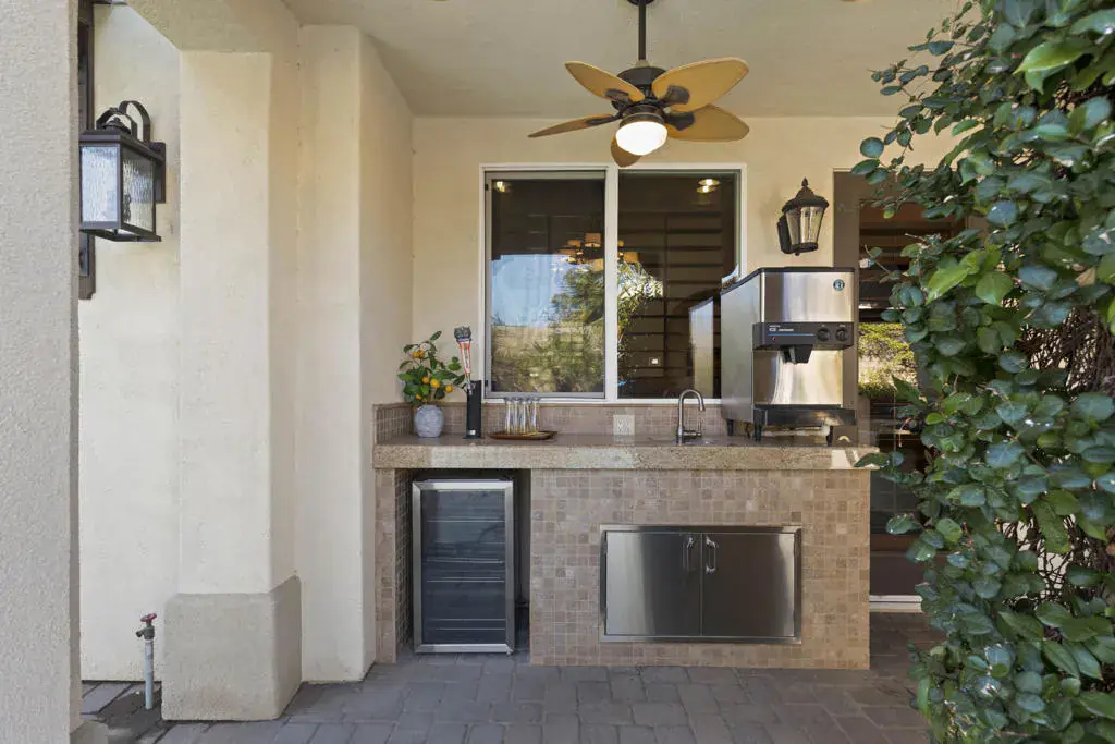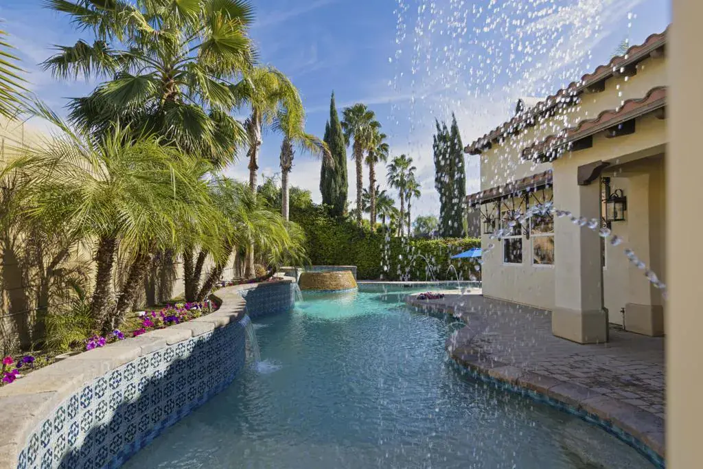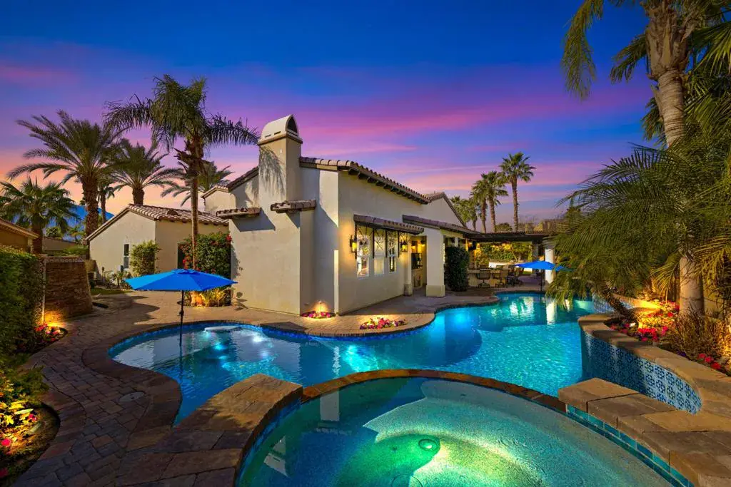 An exceptional home that offers a rare blend of privacy, design, and true resort-style living. This is how desert living is meant to feel. Step into a home that feels less like a residence and more like your own private five-star resort, designed for unforgettable desert entertaining and effortless luxury living. Located in the coveted gated community of Rancho Santana in South La Quinta, this highly upgraded residence spans over 3,700 sq. ft. and offers 4 Bedrooms, 4 1/2 Bathrooms, plus an upstairs private Bonus Room ideal for a guest, media room, or home office. The home includes a spacious attached Casita which provides added flexibility and features custom built-ins, a sink, mini fridge, and a stacked-stone feature wall with built-in TV. The main living spaces are warm and inviting with a custom stone fireplace, built-in entertainment center, soaring ceilings, plantation shutters, and a dedicated billiard room. The expansive primary suite is privately situated in its own wing of the home and offers a true retreat, complete with a cozy fireplace seating area, large spa-like bathroom, and an oversized walk-in closet. Designed for the ultimate indoor-outdoor lifestyle, the resort-style backyard is an entertainer’s dream. Highlights include a chef-grade outdoor kitchen with a sunken BBQ pit, wrap-around granite bar seating for eight, large outdoor TV, stainless steel cooktop, drawers, mini fridge, commercial ice machine, beer tap, and wine cooler. The PebbleTec wrap-around pool delivers all the bells & whistles, including two tanning shelves, a rooftop rain waterfall, three sheer descent waterfalls, a stacked-stone spill-over spa, and six deck jets. Additional amenities include a large gas firepit, a separate six-foot waterfall feature, custom lighting and fans, and a convenient poolside bathroom with shower and stackable washer/dryer. Custom pavers and wrought iron details surround the entire property, located near The Madison Club, polo and equestrian facilities, and just minutes from world-class golf, dining, entertainment, and the charm of Old Town La Quinta. Don’t miss this rare Rancho Santana offering that truly must be experienced in person.