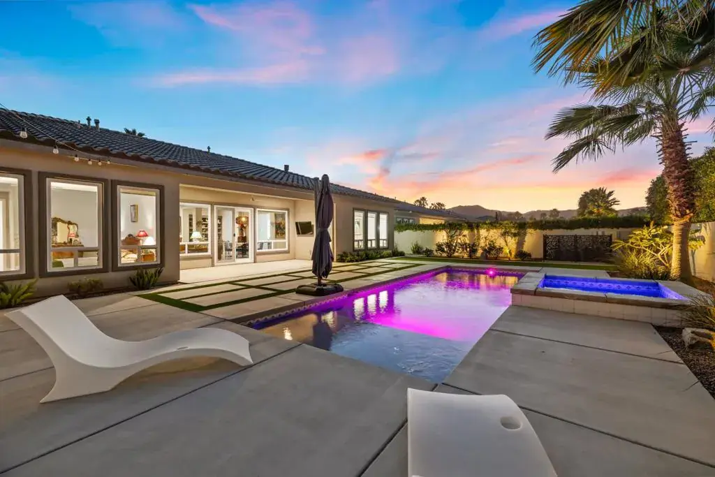 81890 Thoroughbred Trail | Rancho Santana | South La QuintaSituated within the sought-after Rancho Santana community, 81890 Thoroughbred Trail presents a compelling opportunity to own a newer-construction, contemporary home in one of La Quinta’s most desirable residential settings. Completed in 2021, this later phase is especially prized for its transitional design aesthetic, contemporary features and appliances, wide and well-maintained streets, mature landscaping, and overall sense of space, distinguishing itself from earlier phases of the community. The residence spans 2,912 sq ft and offers 3 bedrooms and 4 bathrooms, featuring an open-concept layout designed for today’s buyer and the desert lifestyle. Contemporary finishes, a seamless kitchen-to-living connection, and a spacious primary suite create a home that feels current, comfortable, and easy to live in. Each secondary bedroom is en suite, providing privacy and flexibility for family or guests, while the third bedroom offers its own private entrance, ideal for visitors or extended stays. The contrast between clean white kitchen amenities, large-format darker tile flooring, and the fireplace detail adds visual interest and broad decor appeal. Owned Solar is another Asset with underestimated utility and long-term value.Set on a generous 10,000+ sq ft lot, the spacious backyard offers ample room for relaxed desert poolside living and entertaining, while capturing beautiful westerly San Jacinto Mountain views. Rancho Santana residents enjoy community parks, walking paths, and gathering areas, further enhancing the neighborhood’s appeal.The location is complemented by proximity to many of the desert’s finest lifestyle and sporting destinations, including premier private golf clubs, the Indian Wells Tennis Garden, Desert International Horse Park, Thermal Club, Jacqueline Cochran Regional Airport, polo grounds, pickleball facilities, and the Coachella and Stagecoach music festival venues. Nearby Old Town La Quinta and the famed La Quinta Resort offer additional options for dining, shopping, and local exploration.Whether seeking a year-round residence or a seasonal retreat, this home and community appeal to a wide range of buyers. Opportunities to own in this newer phase of Rancho Santana are limited–this is one not to be missed.Select images include virtual staging to illustrate contemporary furnishing option
