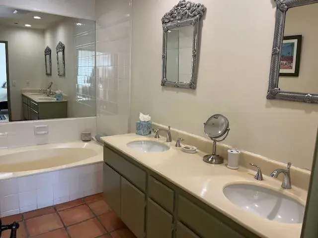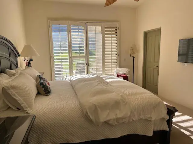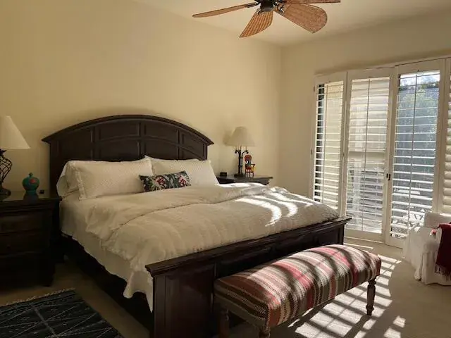 Charming 3 bedroom, 3.5 bath condo located on the 10th hole of the Mountain Course and a short walk to the La Quinta Resort. Georgeous South mountain views and renters enjoy use of community pools and tennis courts in the Santa Rosa Cove private community. Just steps from the Mountain and Dunes Clubhouse and golf courses which are open to the public. Private courtyard with fountain and outdoor dining area. Living Room and Dining Room have french doors that open to back patio with stunning views of mountains and fairway. Cozy kitchen has a dining nook with view of the courtyard. Primary suite has King Bed with mountain views, dual vanities, shower and bath tub. Guest suite has two twin beds and french doors to the courtyad. Casita gives your guest some privacy with Queen bed and has a remodeled shower. All bedrooms have new smart tvs and Spectrum service. Minimum 31 day stay, available immediately. Pets allowed with extra pet security deposit.