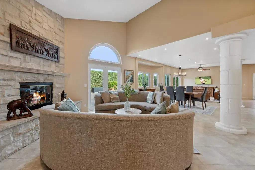 April 2026 is booked. Available 2026 March $8,500/ month. The Starlight Dunes remodel truly shines! Turnkey furnished ready for a minimum 30 days. The kitchen, a standout feature, includes new wooden cabinets, immaculate white Quartz countertops, Kitchen Aid appliances, and a butler’s pantry/coffee bar. The primary suite features a walk-in closet with new built-ins, a fireplace with floor-to-ceiling tiles, and a private balcony offering sweeping views of the northern mountains. The primary bathroom is equipped with dual sinks, a vanity, a spacious walk-in shower, and a private toilet area. The upper level also contains three large bedrooms, one with an en-suite bathroom and two sharing a wraparound deck. The lower level is an entertainer’s dream, with a vast living space and a high vaulted ceiling in the living room Outside, there’s a built-in BBQ, a cozy natural gas fire pit, and an inviting pool and spa. Additionally, there is roughly 300 sf of bonus room.