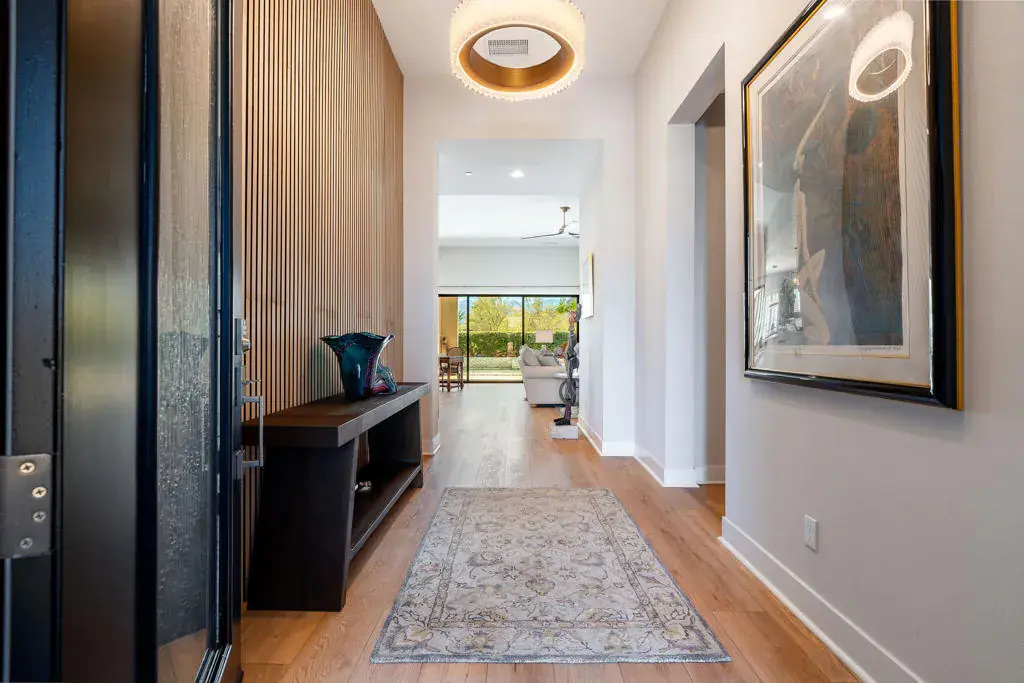 Discover your private sanctuary in Stone Creek Ranch, an exclusive gated enclave in South La Quinta where cascading waterfalls and streams flow into three serene ponds along beautifully landscaped walking paths.This meticulously appointed Larrea floorplan home showcases contemporary architecture with dramatic 12-foot ceilings and innovative 90-degree cornerless stacked sliding doors that completely disappear, seamlessly connecting the expansive great room to your sun-drenched southern exposure backyard.The owners invested $250,000 in premium upgrades including professional landscaping with exterior lighting, paver driveway, built-in barbecue island, pool fountain, custom window treatments, closet build-outs, and Cambria stone accents. The resort-style backyard features a pristine pool and spa perfect for entertaining.The gourmet kitchen boasts an oversized center island with breakfast bar, walk-in pantry, and abundant storage. The luxurious primary suite offers backyard access, a spacious walk-in closet, and a spa-inspired bathroom with dual vanities, soaking tub, and walk-in shower. Two additional guest suites each include walk-in closets and private en-suite bathrooms. The home also features a spacious 3-car garage.Stone Creek Ranch places you minutes from championship golf, tennis, pickleball, hiking trails, acclaimed dining, and the state-of-the-art Acrisure Arena–La Quinta living at its finest.