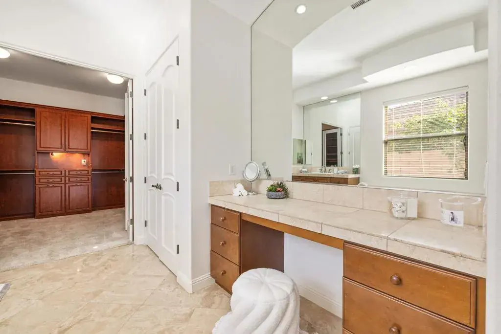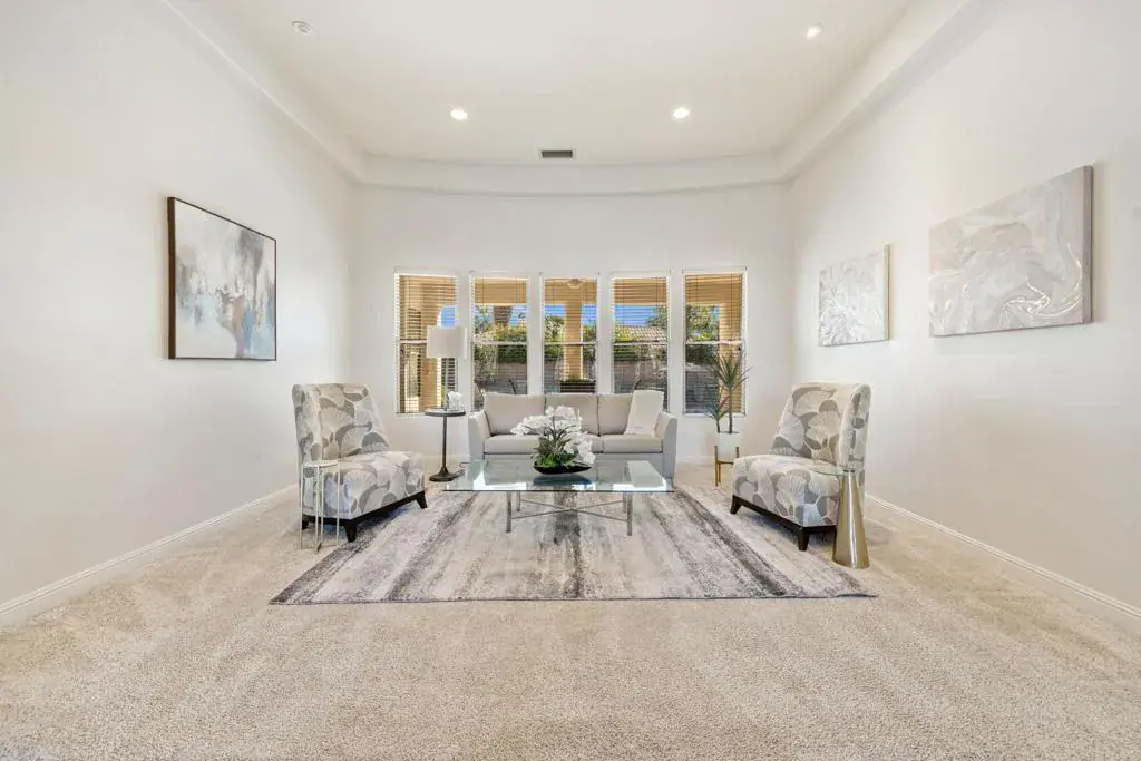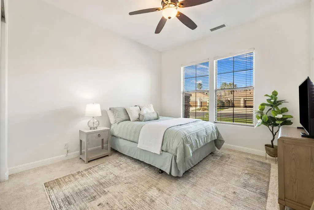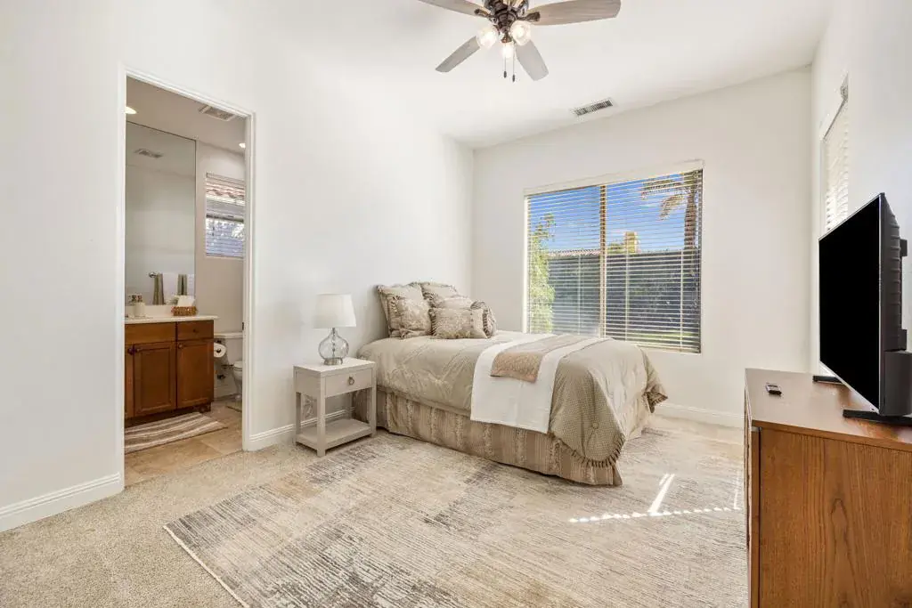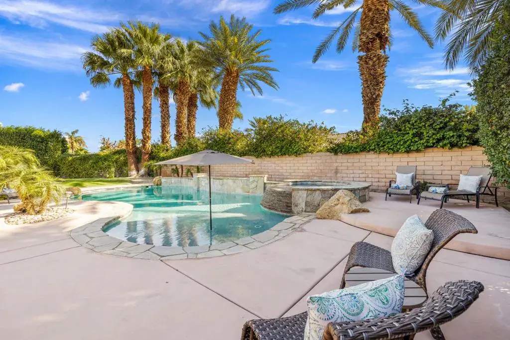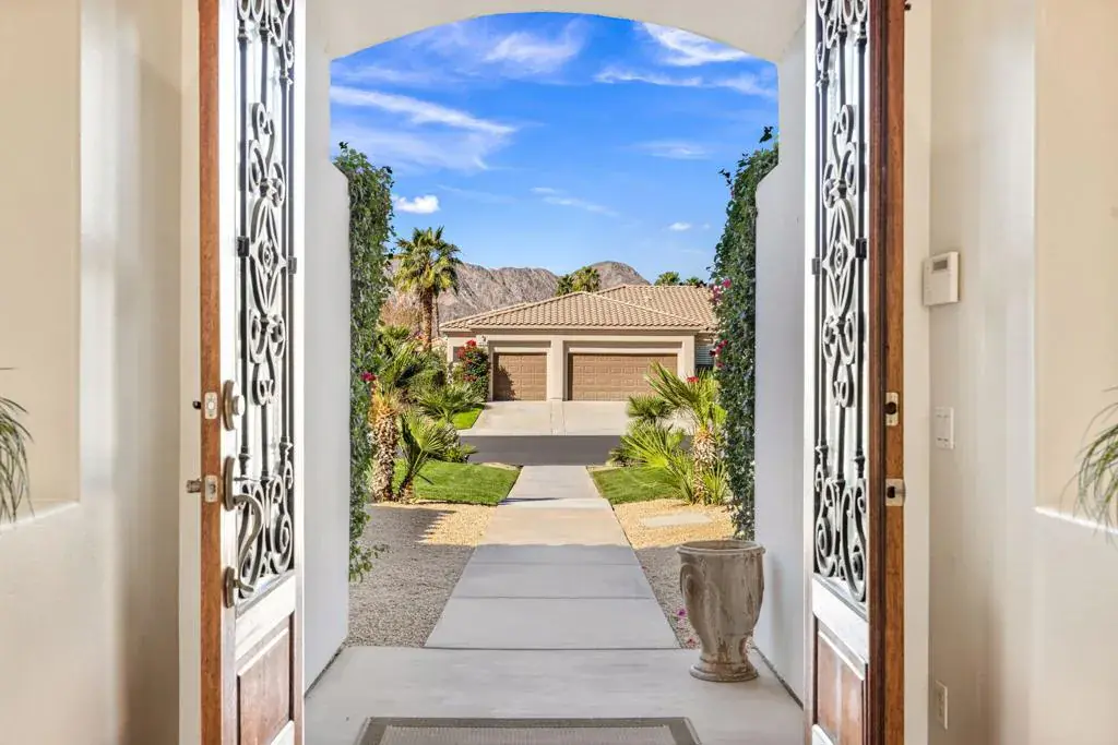 Available, short term seasonal or long term – furnished or unfurnished. Tucked behind the gates of Talante in La Quinta, this exceptional 4-bedroom, 5-bathroom residence delivers space, style, and privacy in all the right ways. Spanning approximately 3,640 square feet, the home is thoughtfully designed with a highly sought-after split layout, offering four generously sized en-suite bedrooms–each with its own walk-in closet–along with a dedicated den/office featuring custom built-in cabinetry.The grand wrought-iron double door entry makes an immediate statement, opening to an interior rich with travertine flooring, coffered ceilings, and expansive living areas ideal for both entertaining and everyday comfort. A formal dining room anchors the main living space, while a sunroom off the primary suite provides a peaceful retreat to unwind.Set on a spacious cul-de-sac lot, the backyard is a private desert escape, highlighted by a newly constructed pool and lush landscaping–perfect for soaking up the La Quinta lifestyle. Completing the package are a three-car garage, low HOA dues, and a prime location just minutes from the Empire Polo Grounds, Indian Wells Tennis Garden, championship golf, upscale dining, shopping, and entertainment.Freshly painted and move-in ready, this Talante home offers the perfect blend of luxury living and everyday easy living, an opportunity that stands out in one of La Quinta’s most desirable gated communities.