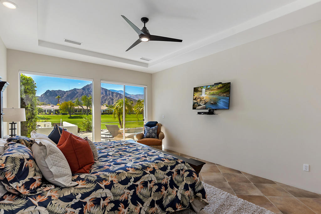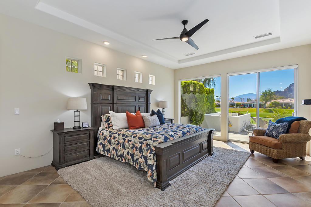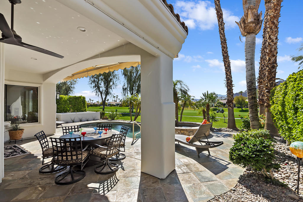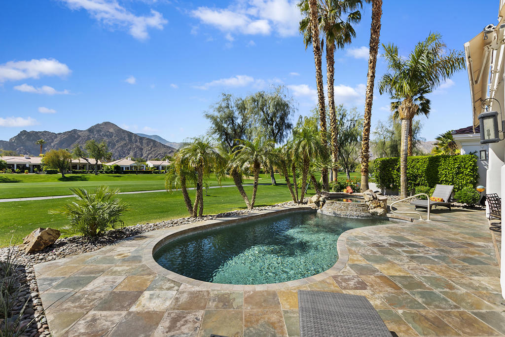 WOW…Mesmerizing Santa Rosa Mountain views from Furnished/Turnkey, 3 Bedroom/4 Bath w/Detached Casita home’s private pool/spa overlooking the eighth fairway of the members only Pete Dye designed golf course in La Quinta. First time seasonally offered for lease in the prestigious Citrus Country Club. Enter imposing ornate metal door into this Valencia open floor plan featuring random ceramic tile flooring throughout w/ mosaic accented inlaid black marble squares, cozy fireplaces, step-down wet bar, two master suites main house another master suite in detached casita all featuring ensuite baths and California king beds. Twelve-foot height windows/sliders & French doors offer abundant lighting. Gourmet kitchen features island, breakfast bar, stainless appliances, farmer’s sink and granite countertops. Gated, tranquil courtyard entry w/fireplace and cantina lighting for evening relaxation and entertainment. Enjoy the breathtaking south mountain views from the custom pebbletech, saline pool/spa w/cascading slate waterfall. Meticulously maintained and ready to enjoy. Seasonal Lease only. Amenities include monthly maid service & HOA fees plus pool/gardener service, water, trash, cable TV, four TV’s w/remotes and Wi-Fi. Tenant pays gas/electric utilities. Leased Jan-March 2027