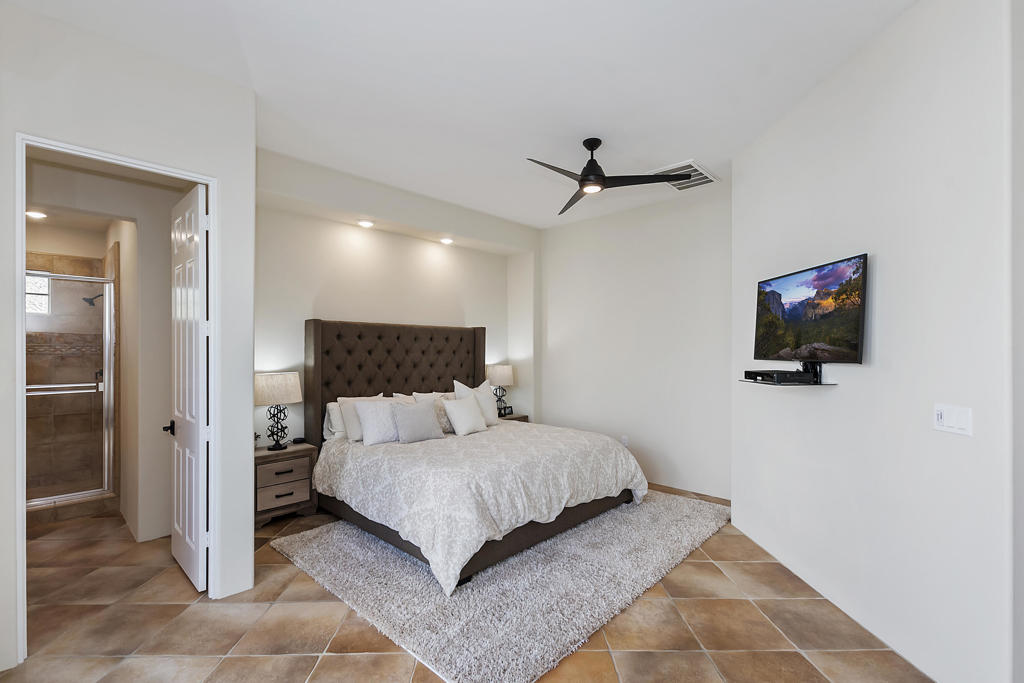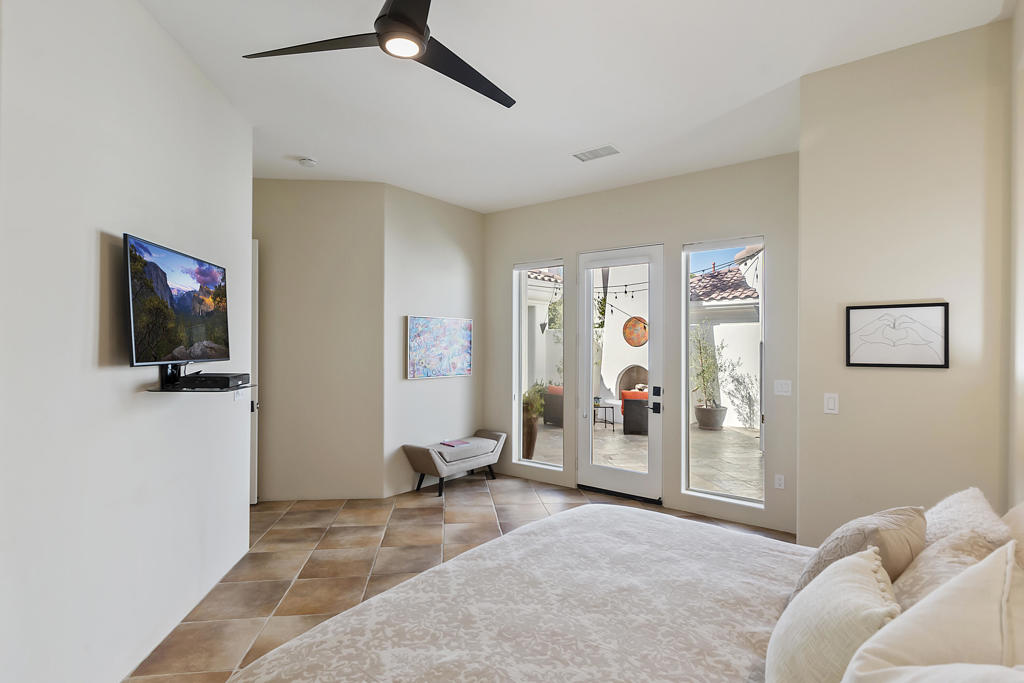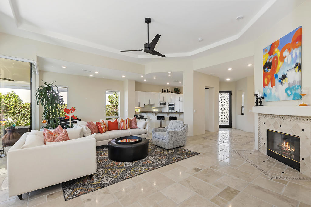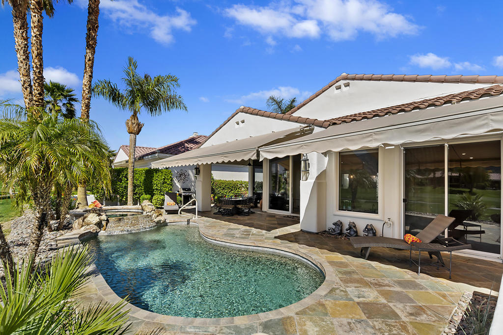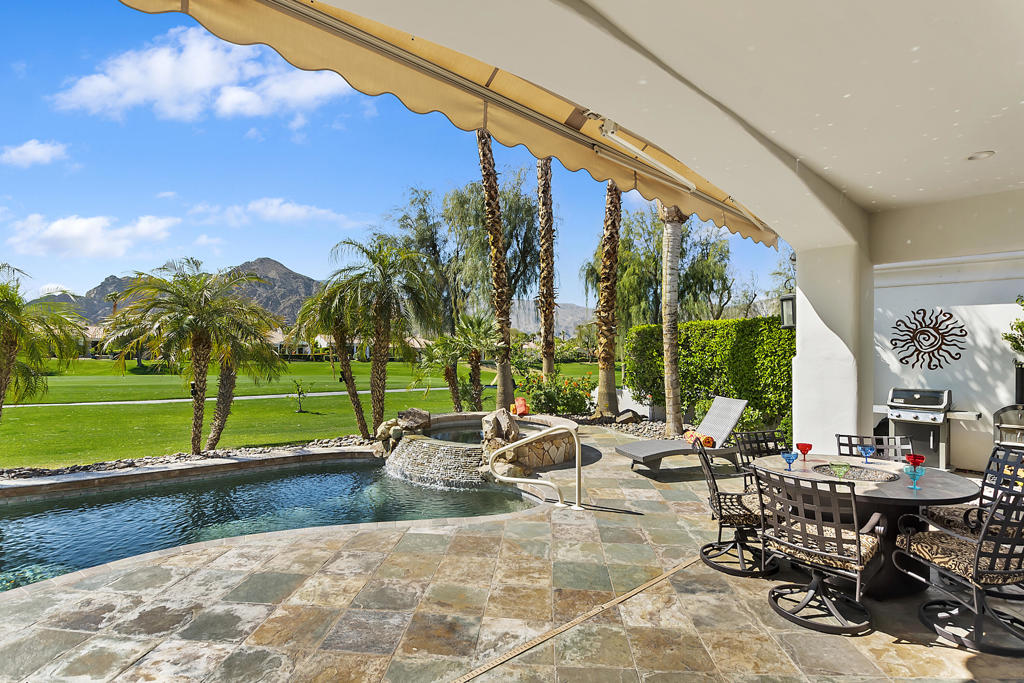 WOW…Mesmerizing Santa Rosa Mountain views from Furnished/Turnkey, 3 Bedroom/4 Bath w/Detached Casita home’s private pool/spa overlooking the eighth fairway of the members only Pete Dye designed golf course in La Quinta. First time seasonally offered for lease in the prestigious Citrus Country Club. Enter imposing ornate metal door into this Valencia open floor plan featuring random ceramic tile flooring throughout w/ mosaic accented inlaid black marble squares, cozy fireplaces, step-down wet bar, two master suites main house another master suite in detached casita all featuring ensuite baths and California king beds. Twelve-foot height windows/sliders & French doors offer abundant lighting. Gourmet kitchen features island, breakfast bar, stainless appliances, farmer’s sink and granite countertops. Gated, tranquil courtyard entry w/fireplace and cantina lighting for evening relaxation and entertainment. Enjoy the breathtaking south mountain views from the custom pebbletech, saline pool/spa w/cascading slate waterfall. Meticulously maintained and ready to enjoy. Seasonal Lease only. Amenities include monthly maid service & HOA fees plus pool/gardener service, water, trash, cable TV, four TV’s w/remotes and Wi-Fi. Tenant pays gas/electric utilities. Leased Jan-March 2027