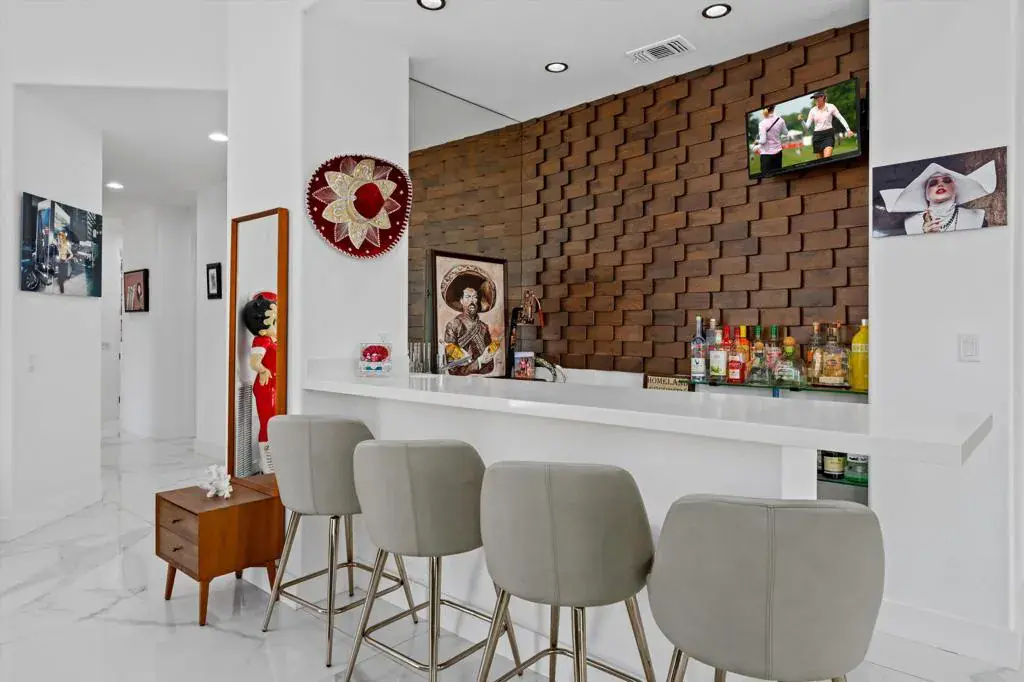 CITRUS CLUB: Over $600K spent on renovation – includes OWNED SOLAR. No expense was spared in crafting the high-end finishes. From the gated courtyard with a massive covered outdoor patio and breathtaking views of the pool and golf course, this home exudes sophistication.The open floor plan boasts soaring 16′ ceilings, 3 bedrooms, a large den (which doubles as a 4th bedroom), and 4 baths. The gourmet kitchen is a chef’s dream, featuring Viking appliances, a 72” refrigerator, quartz countertops, custom cabinetry, and oversized windows that seamlessly blend indoor and outdoor living. The living room is centered around a stunning marble fireplace, complete with a full wet bar.Step outside to a HUGE 800 sqf covered patio, which flows to the PebbleTec pool and spa. The pool includes a 300 sqf tanning shelf, and built-in cocktail table. The grill is Viking w/ marble countertop. There’s also a pet area, synthetic grass, custom lighting and security cameras.The primary suite is a true retreat, showcasing a luxurious spa-like bath with a steam shower, jet tub under a gorgeous chandelier, dual sinks, and a spacious walk-in closet. Additional features include 48×48 tile floors, electric shades, USB chargers, and so much more!!