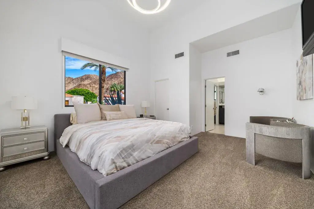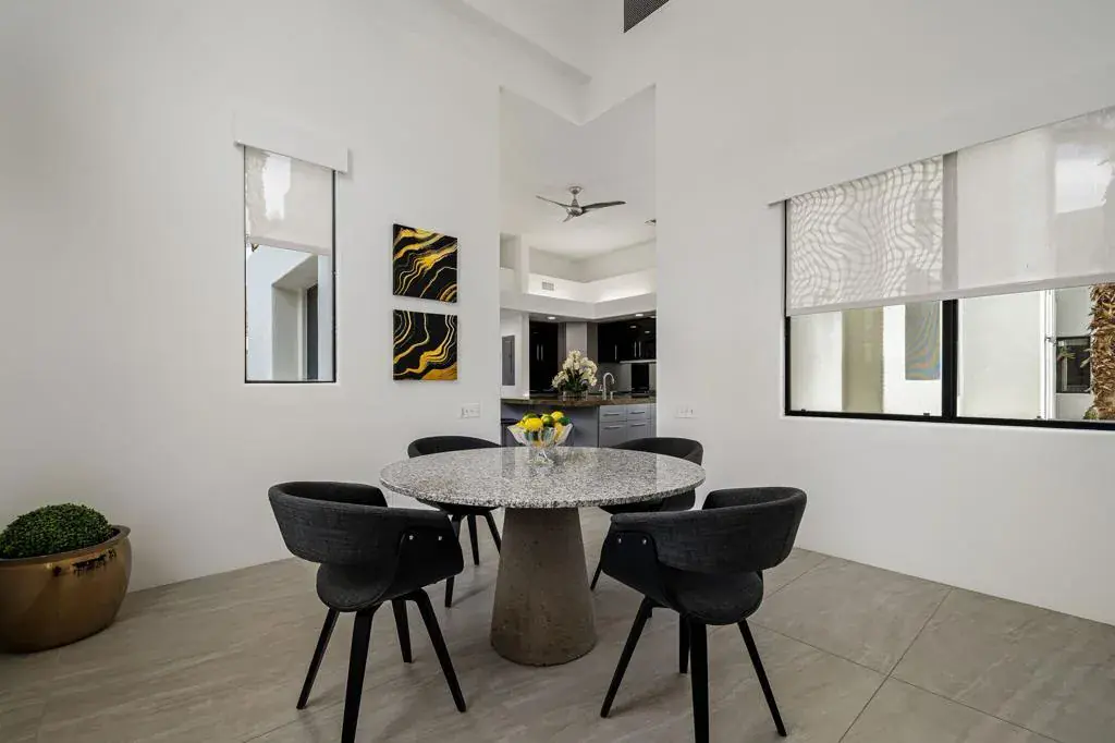 Located within The Enclave, a prestigious private community adjacent to the renowned La Quinta Resort & Club, 49040 Calle Flora is a modern architectural residence offering approximately 4,000 square feet with four bedrooms and four-and-a-half baths. Recent upgrades enhance the home’s architectural clarity while preserving a cohesive, contemporary design.Defined by clean lines, balanced proportions, and an open interior framework, the residence offers generous living spaces that adapt easily to both daily living and entertaining. Natural light is a central design element, enhancing the home’s modern character and creating a calm, inviting atmosphere throughout. The four-bedroom layout provides flexibility for primary living, guest accommodations, or dedicated office or media spaces, supported by four full baths and a powder bath.The home features thoughtfully renovated baths showcasing a generous use of exotic stone selections, blending luxury finishes with timeless design. Additional improvements include, fresh interior and exterior paint, new flooring throughout the main living areas, new carpeting in the bedrooms, and a newer HVAC system, all contributing to the home’s refined presentation and long-term comfort. The kitchen compliments the home’s architectural composition and is designed to comfortably accommodate both daily living and relaxed entertaining.Outdoor living areas extend the architectural footprint and support a seamless indoor-outdoor lifestyle, ideal for relaxing or hosting in La Quinta’s year-round climate. Residents of The Enclave enjoy a heightened level of privacy along with exclusive access to a private tennis court, an amenity that reinforces the community’s boutique, resort appeal.Conveniently located near Old Town La Quinta, championship golf, dining, shopping, and scenic mountain trails, the property offers a rare combination of architectural integrity, recent upgrades, and a highly desirable setting.