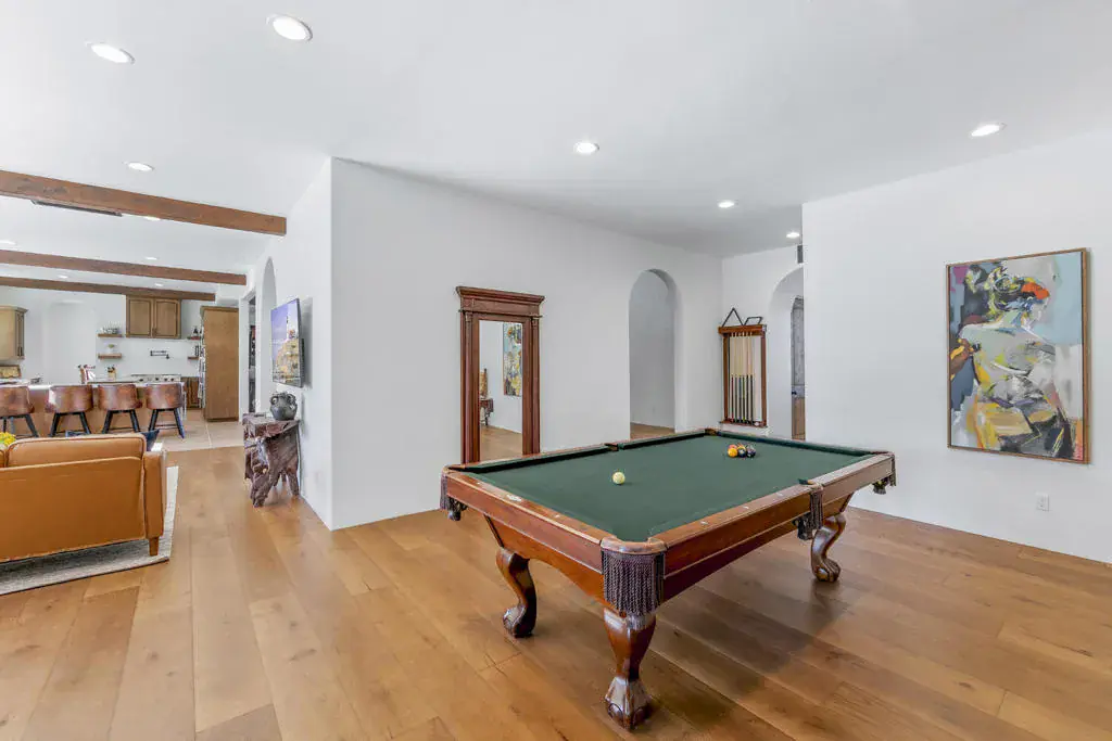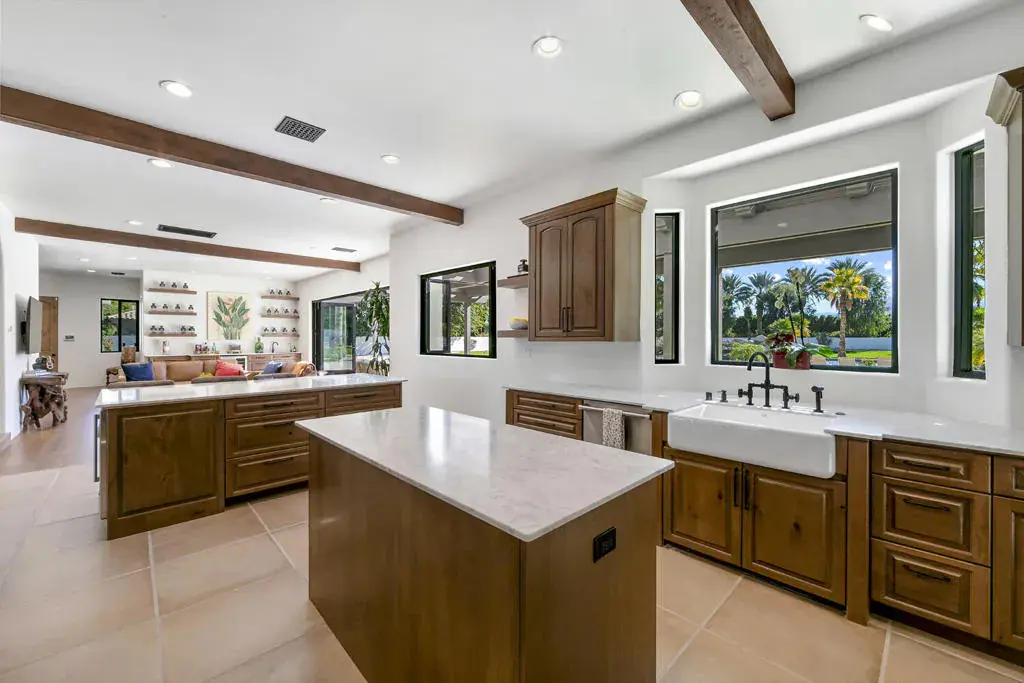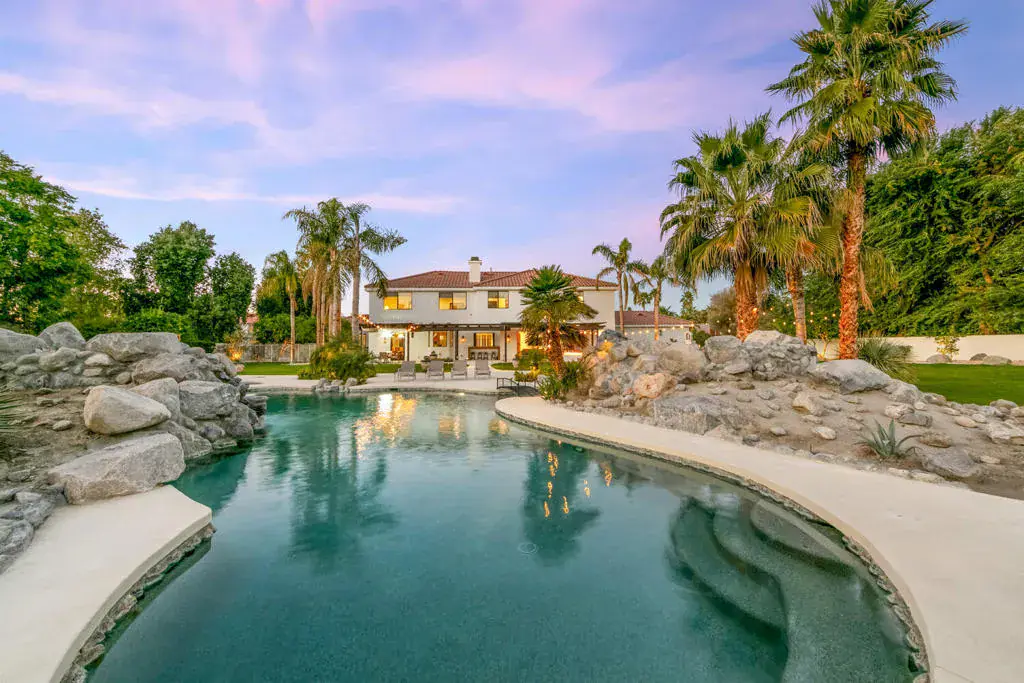 Located behind the gates of The Estates of La Quinta, 81935 Mountain View Lane presents a rare opportunity to own a true resort-caliber estate in one of the desert’s most private and sought-after enclaves. Perfectly positioned near the world-class Desert International Horse Park, the Jacqueline Cochran Regional Airport, PGA West, and the exclusive Madison Club, this property offers unmatched access to elite lifestyle amenities while maintaining exceptional privacy within La Quinta. The estate is set on an expansive 1.25 acres, providing exceptional space, privacy, and the scale necessary to support its resort-style amenities and grounds. Designed for both grand-scale entertaining and everyday luxury, the estate showcases one of the Coachella Valley’s largest resort-style pools, enhanced by dramatic cascading water features and expansive lounging areas. A private par-3 golf hole with crushed white Augusta-style sand bunkers creates a one-of-a-kind backyard experience rarely found in residential estates, delivering a true country club atmosphere at home.The residence has been thoughtfully remodeled with high-end finishes and architectural details throughout its six bedrooms and six-and-a-half bathrooms. Interiors feature 10-inch wide-plank European oak wood flooring, imported Spanish tile, and Carrera white marble throughout. Custom tile bathrooms, two indoor Jacuzzi tubs, and solid 8-foot alder doors elevate the sense of craftsmanship and quality at every turn. The gourmet kitchen and entertaining spaces are anchored by Wolf and Sub-Zero appliances, three wine refrigerators, a full wet bar, and a dramatic 17-foot Fleetwood-style bi-fold door that seamlessly connects indoor and outdoor living. A six-foot pass-through window further enhances the flow for hosting, while custom cast-iron A/C vents and a whole-house central vacuum system reflect the home’s attention to refined detail and modern convenience. 81935 Mountain View Lane is a rare offering that blends privacy, proximity, and resort-level amenities into a single exceptional estate–an ideal retreat for those seeking the highest level of luxury living in La Quinta.