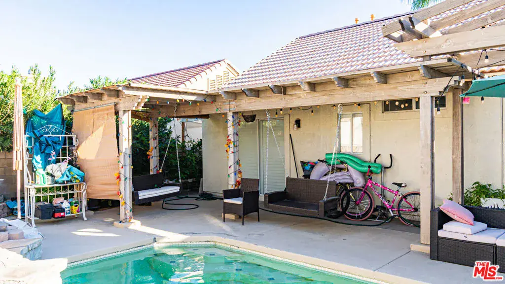 Beautiful 4-Bedroom Home w/ Swimming Pool in the Topaz Community of La Quinta! Recently renovated in 2022, this home has designer tile flooring throughout, updated bathrooms, window shutters, & decorative stone wall coverings in living areas. Featuring an open modern-concept layout, soaring vaulted ceilings & lots of natural light create an open & airy environment. Living room. Family room. Dining area w/ chandelier & fireplace. Kitchen w/ dine-in bar/center island. Spacious bedrooms. Backyard w/ heated saltwater swimming pool, patio cover, dining area, & decorative lighting – perfect for entertaining! Central AC + heat. Within blocks of top area schools & just minutes to the best shopping, dining, & entertainment the area has to offer. A fantastic opportunity that is not to be missed!