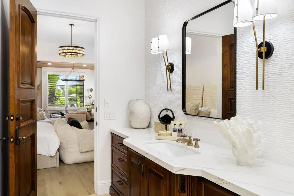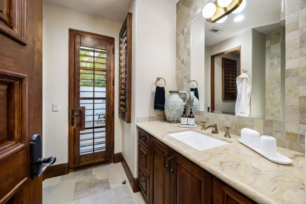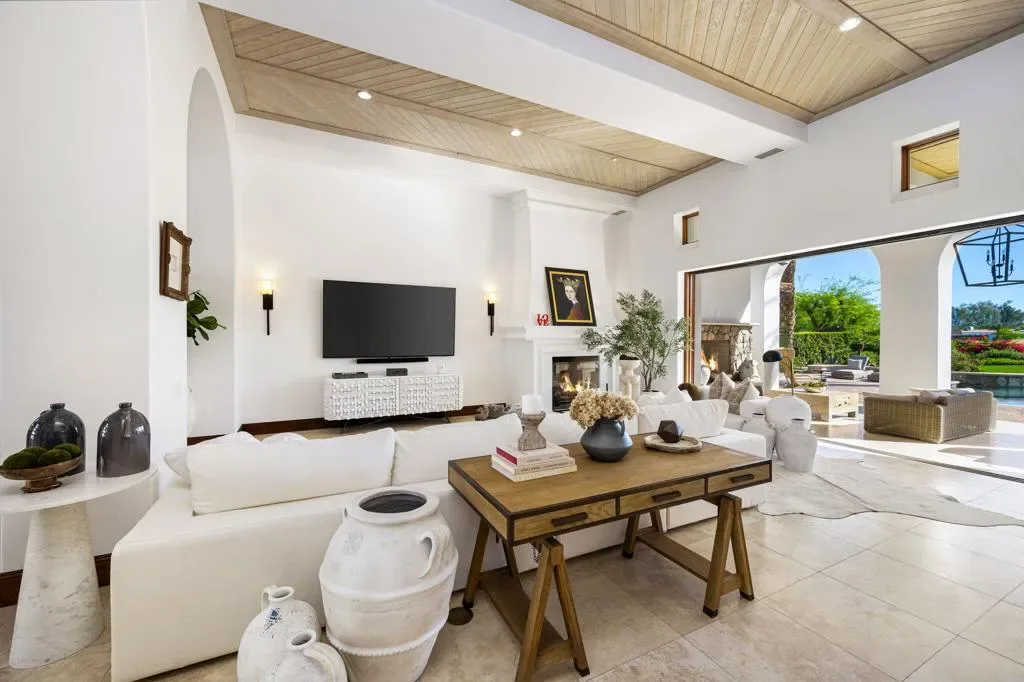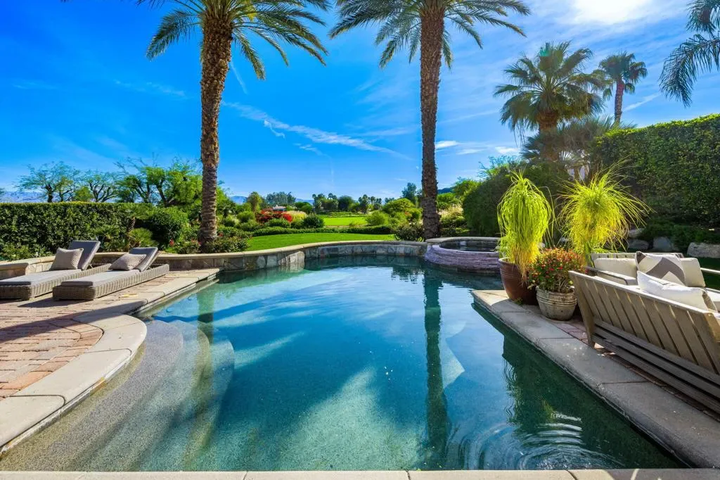This extraordinary home is impeccably remodeled, combining thoughtful design with exquisite detail! Every aspect of the exterior and interior has been updated to reflect today’s luxury California lifestyle. French doors along the courtyard let natural light into the foyer and a wall of sliders to the covered loggia show off beautiful views. A sitting area is adjacent to the kitchen and great room for intimate conversation. The gourmet kitchen has gorgeous counters, Pro Viking appliances and is just one of the many spaces that have been enhanced with unique tile work. The wood cabinetry from the kitchen carries on to the sophisticated wet bar with accents of black soapstone. Beautiful built-ins and a tray ceiling define the private office along the primary hall. Both the primary and secondary suites/casita are over the top with luxury and can be accessed via the front courtyard. An additional secondary suite has been converted to a large closet and can be converted back to a bedroom before closing if desired. Unique touches throughout the home include tray ceilings inlaid with light wood in the great room that continue to the covered patio. Casual elegance describes this home perfectly withits use of private spaces, patios off bedrooms and four fireplaces. Set in Tradition Golf Club, a beautiful community with views on three sides of the local mountains and is close to Old Town La Quinta shopping and restaurants! If you’ve been looking for a truly special home, This is the one.