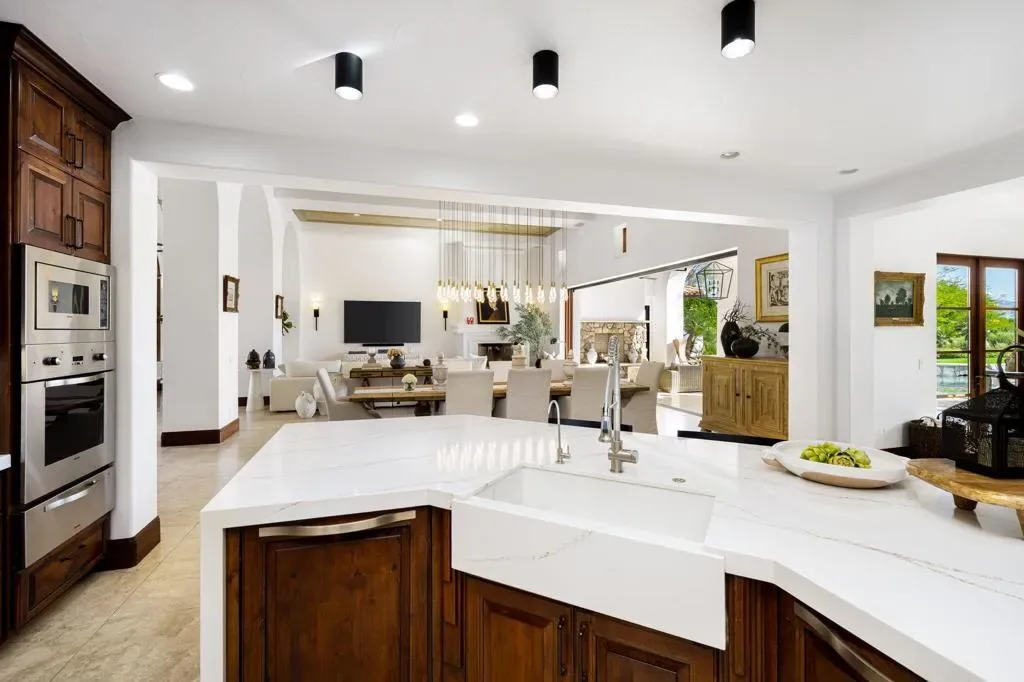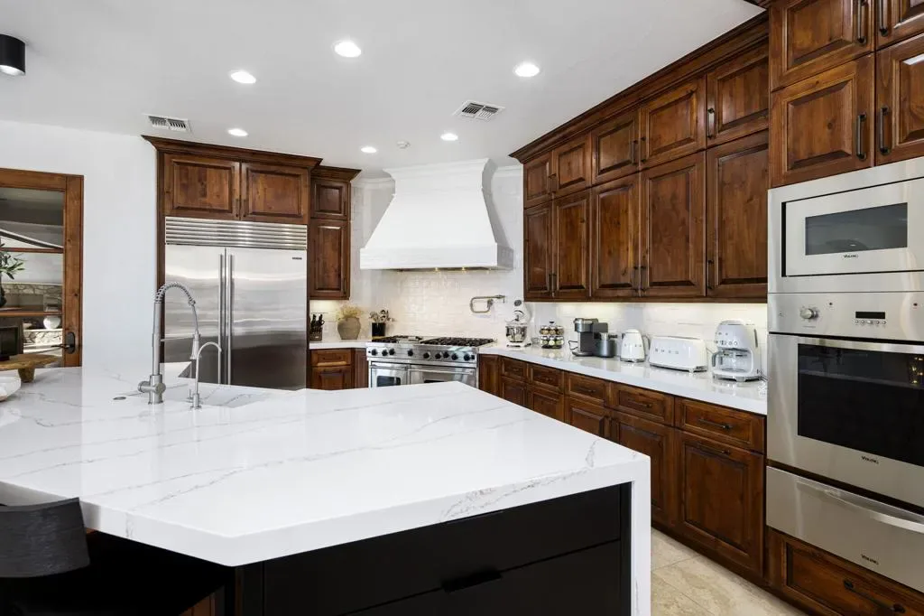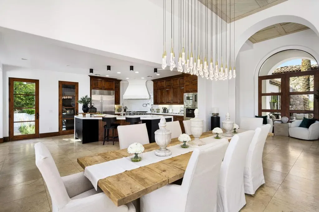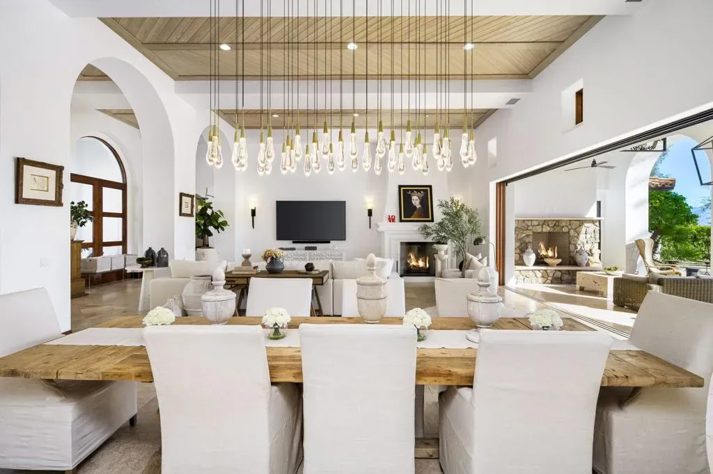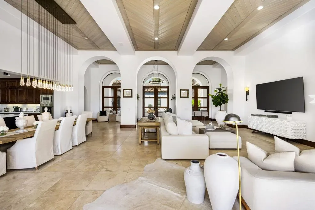 This extraordinary home is impeccably remodeled, combining thoughtful design with exquisite detail! Every aspect of the exterior and interior has been updated to reflect today’s luxury California lifestyle. French doors along the courtyard let natural light into the foyer and a wall of sliders to the covered loggia show off beautiful views. A sitting area is adjacent to the kitchen and great room for intimate conversation. The gourmet kitchen has gorgeous counters, Pro Viking appliances and is just one of the many spaces that have been enhanced with unique tile work. The wood cabinetry from the kitchen carries on to the sophisticated wet bar with accents of black soapstone. Beautiful built-ins and a tray ceiling define the private office along the primary hall. Both the primary and secondary suites/casita are over the top with luxury and can be accessed via the front courtyard. An additional secondary suite has been converted to a large closet and can be converted back to a bedroom before closing if desired. Unique touches throughout the home include tray ceilings inlaid with light wood in the great room that continue to the covered patio. Casual elegance describes this home perfectly withits use of private spaces, patios off bedrooms and four fireplaces. Set in Tradition Golf Club, a beautiful community with views on three sides of the local mountains and is close to Old Town La Quinta shopping and restaurants! If you’ve been looking for a truly special home, This is the one.