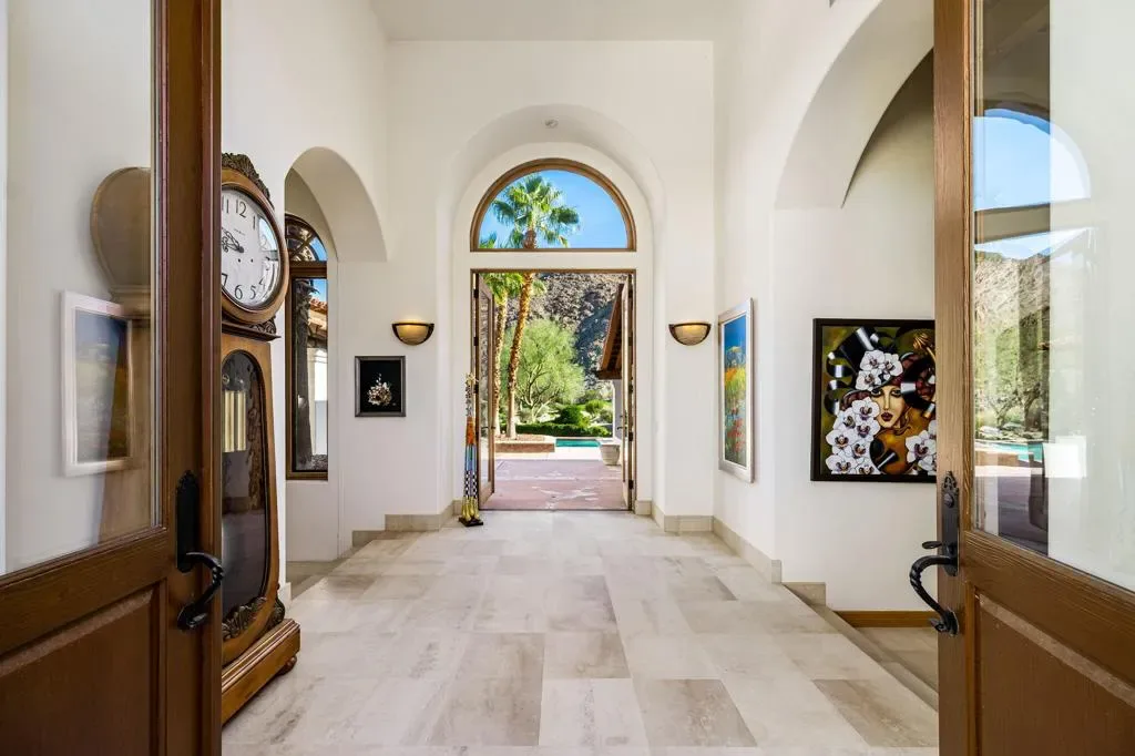 This extraordinary property needs few words–the photos speak eloquently to its rare and breathtaking views and luxury craftsmanship.Designed for maximum architectural impact, the home is oriented to showcase sweeping fairway and Desert Mountain vistas at every turn.Adding to the appeal, there is a rare opportunity for a qualified buyer to assume an existing loan of approximately $900,000 at a rate below 2%. From the moment you enter the foyer, the iconic green fairway and mountain backdrop are brought into sharp focus. To the left of the entry is a private primary wing with an office retreat. To the right of the foyer, two steps down lead to a central hallway that artfully separates the living and family rooms, guiding you toward the formal dining room and spacious kitchen. An open bar serves both the dining and living spaces, ideal for entertaining.A delightful and uncommon surprise awaits accessed by a graceful curving staircase: a private wine cellar with room to sit and taste.An ensuite guest bedroom within the main home–currently used as a generous fitness space–offers flexibility, while the handsome office could easily serve as an additional guest room if desired.Though positioned on the fairway, thoughtful landscape design creates an exceptional sense of privacy around the expansive pool, spa, and multiple patios. A detached guest casita, located off the gated courtyard, opens through French doors to a tranquil lawn setting.Five fireplaces–including a patio fireplace–feature beautiful surrounds throughout the home for our cool winter evenings.Offered turnkey furnished. Artwork available outside of escrow.