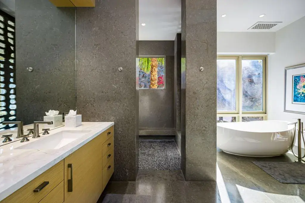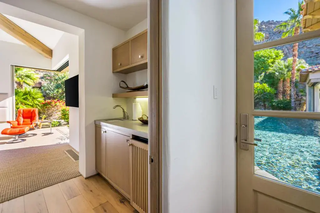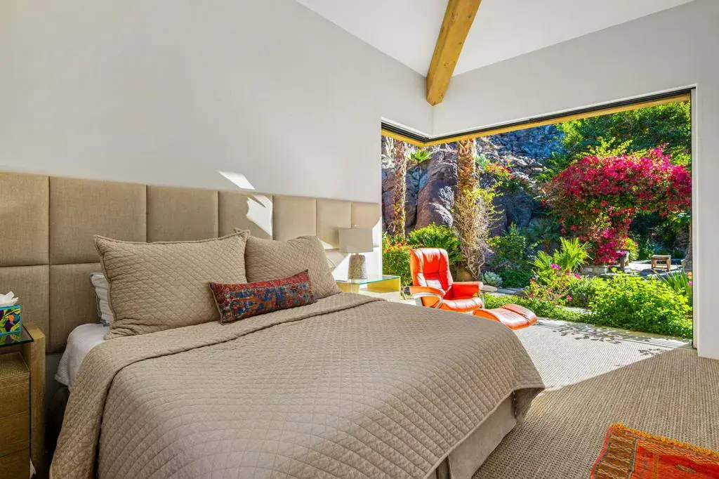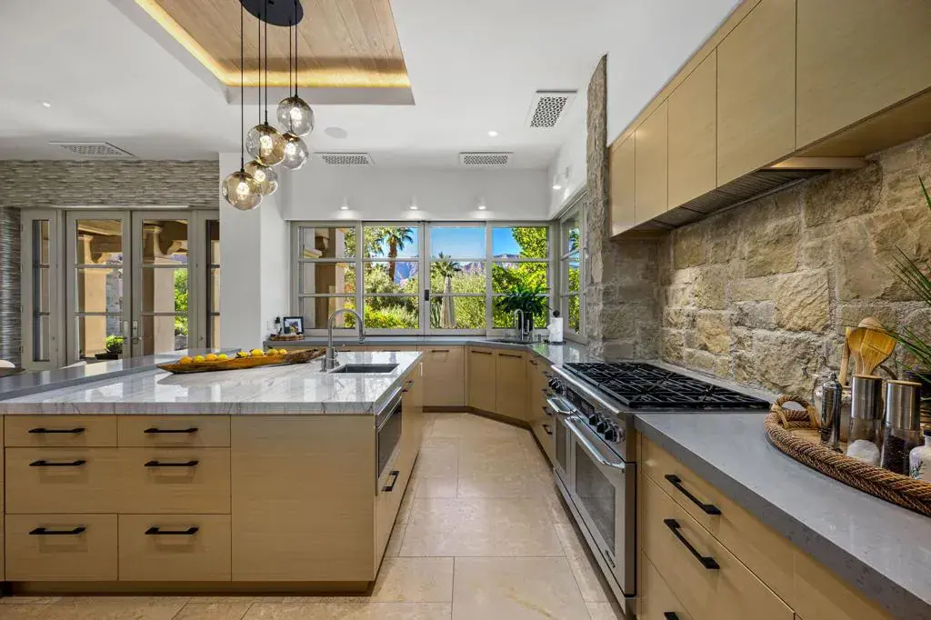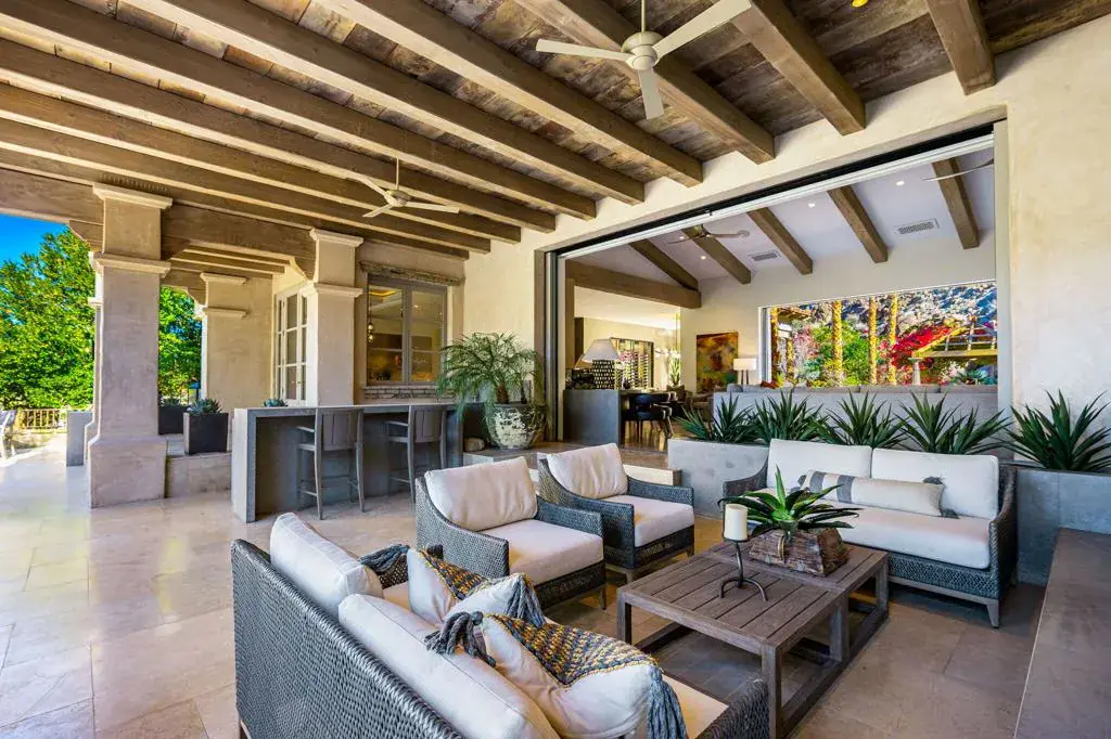 Stunning Mountainside Masterpiece with Euro Fusion Design! The ultimate vacation getaway, as endless pocket doors let living areas and bedrooms float on a tropical lagoon. Dramatic Great Room has soaring beam ceilings, and opens on two sides for seamless outdoor living. A massive covered Loggia with dramatic fireplace overlooks sunken patio with cliff-side zero edge pool and infinity spa. With 4 Bedrooms including 2 Casitas, bright Office, and Master Bedroom with Gym, this house has all the amenities. With gourmet Kitchen & Butler’s Pantry, outdoor BBQ, multiple fire features, waterfall, wrap around pond and patios, one touch lighting, this home offers the best in casual living or grand entertaining. This renowned Gordon Stein design is a fusion of old world detail and open contemporary living – all the light and bright comfortable finishes that today’s buyers are looking for, combined with the ultimate in relaxed textures and quality craftsmanship. Furnished per inventory.
