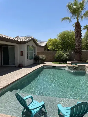 RENTED 3-1-2026 thru 4-30-2026. AVAILABLE March, April, & May of 2027 ONLY.. Trilogy in La Quinta is a 55 and older community. This 3 bedroom 3 bath home with a pool & spa. It is available all months with a 3 month minimum. Golf cart is included not far from the clubhouse with a gym, Pickleball, Tennis, Bocca. Cafe in the clubhouse. Arts and craft room. Water aerobics. Come play our beautiful 18 hole golf course.