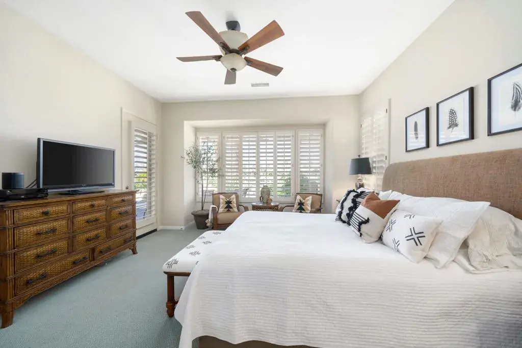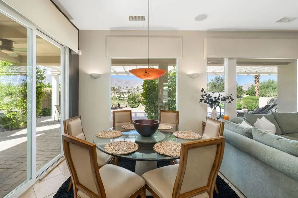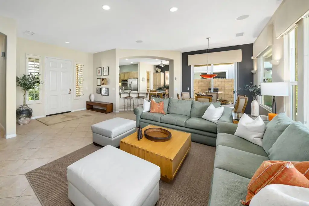 RENTED 12-29-24 thru 4-10-2025. RENTED 9-1-25 thru 4-3-2026.Owner using the home AVAILABLE all other months..High season 8500.00 . Summer months 4800.00. Owner has install SOLAR on the roof. Plus he has EV in garage for any electric cars. Trilogy La Quinta Vacation Rental – 55 and Over Community – Exceptional Monarch Model with attached Super Casita located on the golf course with a waterfall spa and sweeping views of the 13th and 16th fairways, and the picturesque lake in between. Coral Mountain, Santa Rosa Range and San Jacinto majestic views complete the home’s panoramic backdrop. This beautiful home comes with ‘EV car charger on site’. With a nice spa with views of mountains and golf course. This sought after plan has 3 bedrooms, 3 baths, a den/office, and offers 2091 sq ft. of luxurious living space. Tenants have access to all amenities that Trilogy La Quinta has to offer. Rates are as follows: Jan-Mar-April $8500, May and on $4800