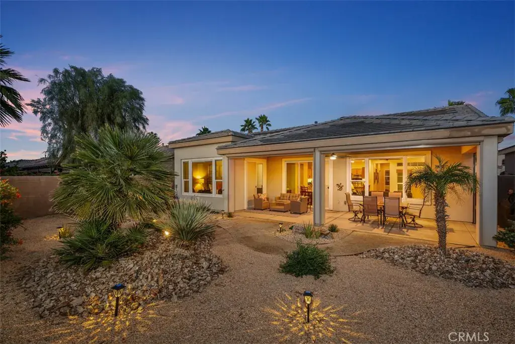 Home is Leased NOV 15, 2025 thru MAR 31,2026.Home is available other months. Welcome to the 55+ Community of TRILOGY in La Quinta. This beautifully decorated Oasis floor plan offers 2 bedrooms 2 bath with approximately 1580 Sq. Ft. of living space with many recent updates to furnishings. The kitchen features a center island with granite counter tops, and all stainless steel appliances. The walls have been freshly painted, and new carpeting installed just last year in both bedrooms. Relax in the backyard on the patio furniture and watch the sunrise on the beautiful Santa Rosa Mountains. This beautiful home is located within walking distance to the Clubhouse. The Trilogy Community Clubhouse features many amenities that includes a pool, jaquzzi, lap pool, gym, pool table, pickle ball courts, tennis courts, Bocci Ball, a Cafe, and even a Day Spa to enjoy. Minimum 30-day rental. Call for Pricing and availability!