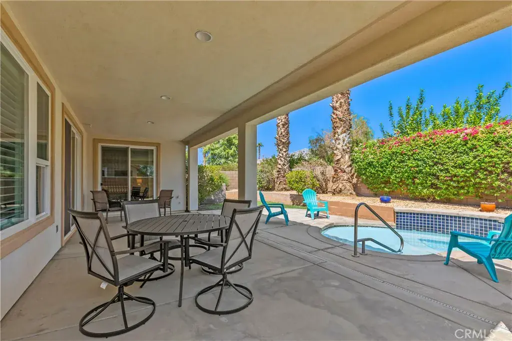 Home is LEASED DEC. 1,2025 thru MAR. 31, 2026 home is available other months. Welcome to the 55+ Guard gated Community of TRILOGY in La Quinta. This beautifully decorated Oasis floor plan offers 2 bedrooms and 2 baths with approximately 1580 sq. ft. of living space. The entire home has been completely furnished with new furnishings, from the new mattresses down to the plates and silverware, including a new refrigerator and Washer & Dryer. Be the first to vacation in this newly offered home here in Trilogy. Take advantage of the home’s in-ground jacuzzi first thing in the morning once you wake up, or enjoy the relaxing ambiance as you wind down in the evening from a long day of fun activities. The newly renovated Restaurant and golf course is tentatively scheduled to re-open this November. Come enjoy the festivities and the long-anticipated grand re-opening of the golf course & restaurant. The Trilogy Community Clubhouse features many amenities that include a pool, jacuzzi, lap pool, gym, pool table, pickle ball courts, tennis courts, Bocci Ball, a Cafe, and even an on-site Day Spa to enjoy. A Minimum requirement in this community is a 30-day rental period. Call for Pricing and availability! Photos taken during the early phase of over-seeding of the HOA front yards.