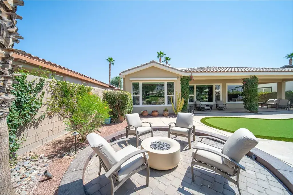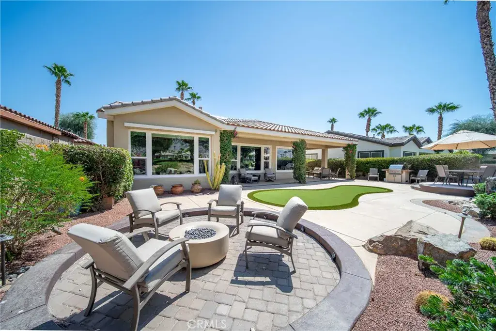 Outdoors, you can practice on the backyard putting green, relax under the retractable shade in the master bedroom, or gather around the fire pit and gas barbecue for sunset evenings.