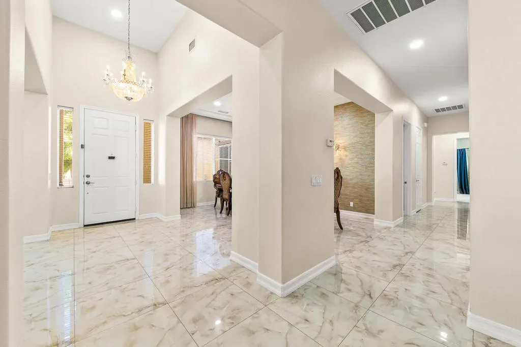 This is one of those homes that truly adapts to real life. Located in one of North La Quinta’s most established and desirable neighborhoods, this beautifully upgraded residence offers a rare blend of comfort, flexibility, and thoughtful design, all in a setting that feels welcoming from the moment you arrive. A long driveway, mature landscaping, fruit trees, and inviting courtyard spaces create an immediate sense of home. Inside, the layout is both elegant and incredibly functional. Formal living and dining rooms provide polished spaces for holidays and special gatherings, while the expansive great room is perfect for everyday living–open, bright, and filled with natural light. High ceilings and a seamless flow throughout the home create a feeling of openness without sacrificing warmth.One of the home’s most exceptional features is the dual-kitchen configuration, a true rarity in the La Quinta market. The main kitchen is a chef’s dream, custom built with high-end appliances, extensive special-order cabinetry, and exceptional storage, ideal for entertaining and serious cooking. A second full kitchen adds incredible versatility, perfect for multigenerational living, extended guests, catering, baking, or additional prep space. Over $350,000 in upgrades are felt throughout the home, including more than $30,000 in upgraded flooring, designer wallpaper, and carefully selected finishes that elevate every space. Spacious bedrooms offer comfort and privacy, while multiple flex rooms easily transform into home offices, studios, fitness areas, or guest suites. A private office with its own exterior entrance is ideal for remote work, an in-home business, or private guest quarters. Outdoor living is just as inviting, with paver patios, courtyard-style spaces, and established landscaping designed for relaxing or entertaining year-round. Dual air conditioning systems ensure efficient comfort in every season. Conveniently located near parks, walking paths, golf, shopping, dining, Old Town La Quinta, and highly regarded IB schools within Desert Sands USD, this home delivers both lifestyle and location. With its rare dual kitchens, flexible floor plan, extensive upgrades, and prime North La Quinta setting, this is a home designed for the way people live today–beautifully, comfortably, and with room to grow.