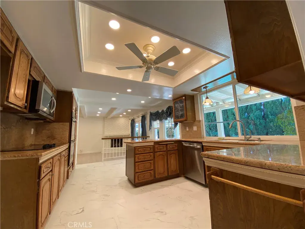 Gorgeous Single Family Pool House in nice North La Verne neighborhood. Solar system. Great Bonita School District. 5 Bedrooms, 3.5 bathroom. Live area 3002SQF. Lot size 10270SQF. 3 cars garage attached. Manicured gardens, mature trees, grass area & a front patio. Backyard w/pool & spa, covered 2 patios w/ceiling fans & lighting, professional landscaping. Family room w/a fireplace, custom lighting & French doors to backyard. Fully remodeled including brand new windows, flooring and all bathrooms. Kitchen w/granite counters, stainless appliances, recessed lighting, new electric range & breakfast nook open to family room. Living room w/leaded glass front window, recessed lighting & formal dining room w/chandelier & French doors to backyard. Downstairs 1.5 bathrooms. Upstairs master bedroom w/vaulted ceilings, slider w/wood shutters that lead to a balcony & two closets. Master bath w/dual sinks, granite counters, new cabinetry, custom lighting, a brand new stand up tub, separate shower. Four spacious bedrooms upstairs. Huge room w/wood laminate floors & a slider w/shutters to a wrap-around balcony w/mountain views. Full upstairs guest bath. Convenient to I-210, 10 & 57 and a variety of shopping, dining and entertainment venues. Tenants need to take care the pool and garden service fee.