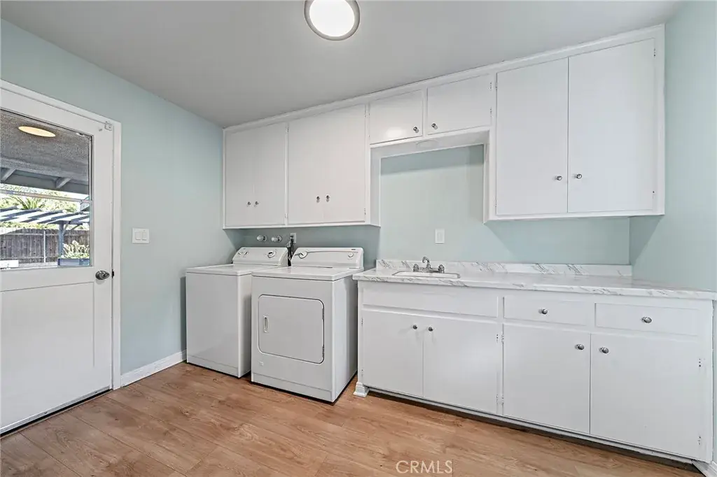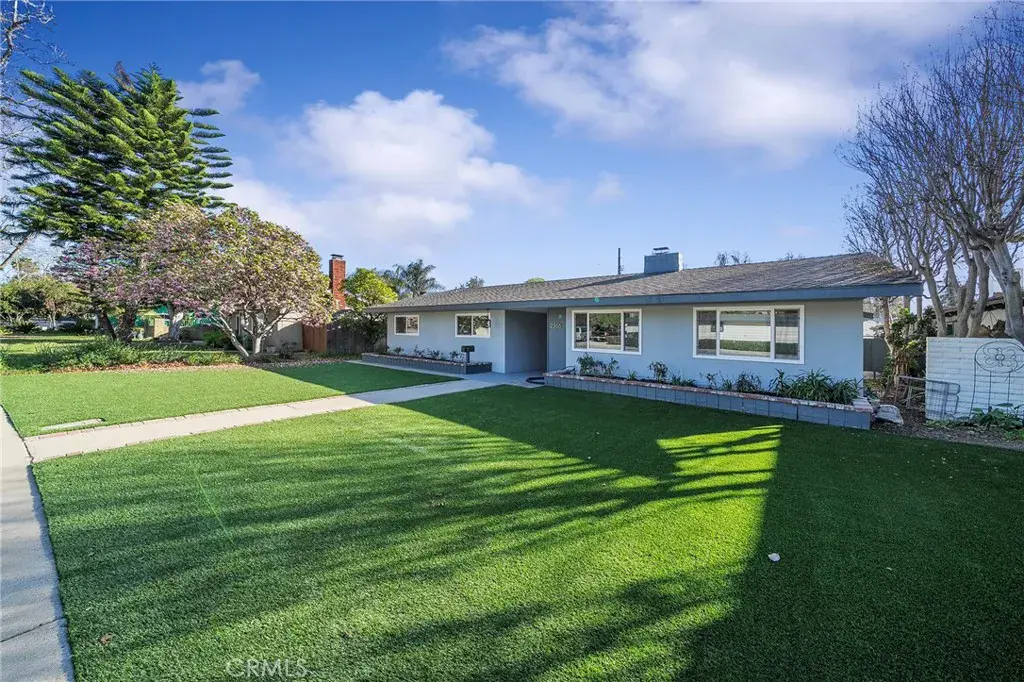 Located in the heart of Old Town La Verne, this 3-bedroom, 2.5-bathroom residence offers approximately 1,962 square feet of living space and showcases classic mid-century architecture with modern updates throughout. The home features a detached two-car garage with a bonus room connected by a breezeway. The bonus room includes a vanity with sink and a closet and may be used as a potential fourth bedroom, guest room, or office. An additional carport with an automatic gate is accessible from the alley. The front yard is landscaped with low-maintenance artificial turf, while the backyard offers a deck and gazebo, providing multiple outdoor living and entertaining areas. Interior features include quartz countertops in the kitchen and bathrooms, luxury vinyl plank flooring, and an office nook with built-in cabinetry. The formal dining area is highlighted by a stone fireplace with built-in shelving and mantle. Sliding glass doors open from the dining and kitchen area to the backyard, enhancing indoor-outdoor living. The primary bedroom includes sliding glass doors, a walk-in closet, and exterior access. A dedicated laundry room is located in the service porch. Centrally located with Las Flores Park and Roynon Elementary directly across the street, the property is extremely walkable also with easy access to Bonita High and nearby shopping and dining in Old Town La Verne.