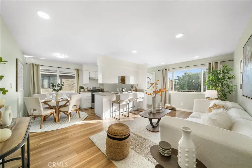 Step inside to a bright living space featuring new waterproof laminate flooring, new recessed lighting, and fresh interior paint throughout. The updated kitchen shines with new quartz countertops, new sink, pull-down faucet, new stove, and new range hood, creating a clean, modern space ideal for everyday living. The spacious bathroom has been remodeled with new tile flooring, new sink, light fixture.