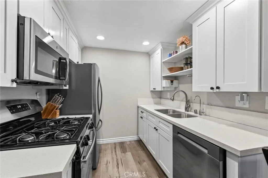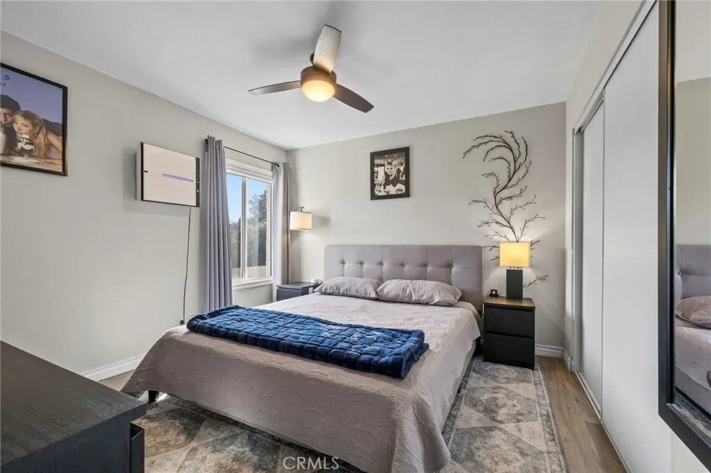Situated in the highly desirable Park La Verne community within the award-winning Bonita Unified School District, this beautifully updated 1-bedroom, 1-bath ground-level condo offers stylish comfort and everyday convenience. Step inside to an open living space filled with natural light. Gorgeous updated flooring flows throughout, creating a warm, cohesive feel. The spacious living room is anchored by a large picture window, bringing in greenery and mountain views while enhancing the airy atmosphere. Ceiling fans and updated lighting add both style and year-round comfort. The kitchen has been thoughtfully refreshed with quartz countertops, updated cabinetry, stainless steel appliances, recessed lighting, and ample prep space — a clean, modern look that feels fresh without losing warmth. It’s functional, inviting, and ready for everyday living or entertaining. The comfortable bedroom offers a peaceful retreat, while the well-appointed bathroom provides comfort and practicality. With a well-designed layout, every space feels intentional. Beyond the unit, Park La Verne offers beautifully maintained grounds, mature trees, scenic mountain backdrops, and resort-style amenities including a sparkling pool, relaxing spa, gated entry, laundry facilities, and assigned parking with additional storage. The community has a quiet, tucked-away feel while still being incredibly connected. Location is where this property truly shines. With easy access to both the 210 and 57 Freeways, commuting is effortless whether you’re heading to Los Angeles, the mountains, Orange County, or the beach. Shopping, dining, parks, and hiking trails are just minutes away — offering the perfect balance of convenience and lifestyle. Ideal for first-time buyers, downsizers, or investors, this is an opportunity to own in one of La Verne’s most sought-after communities.
