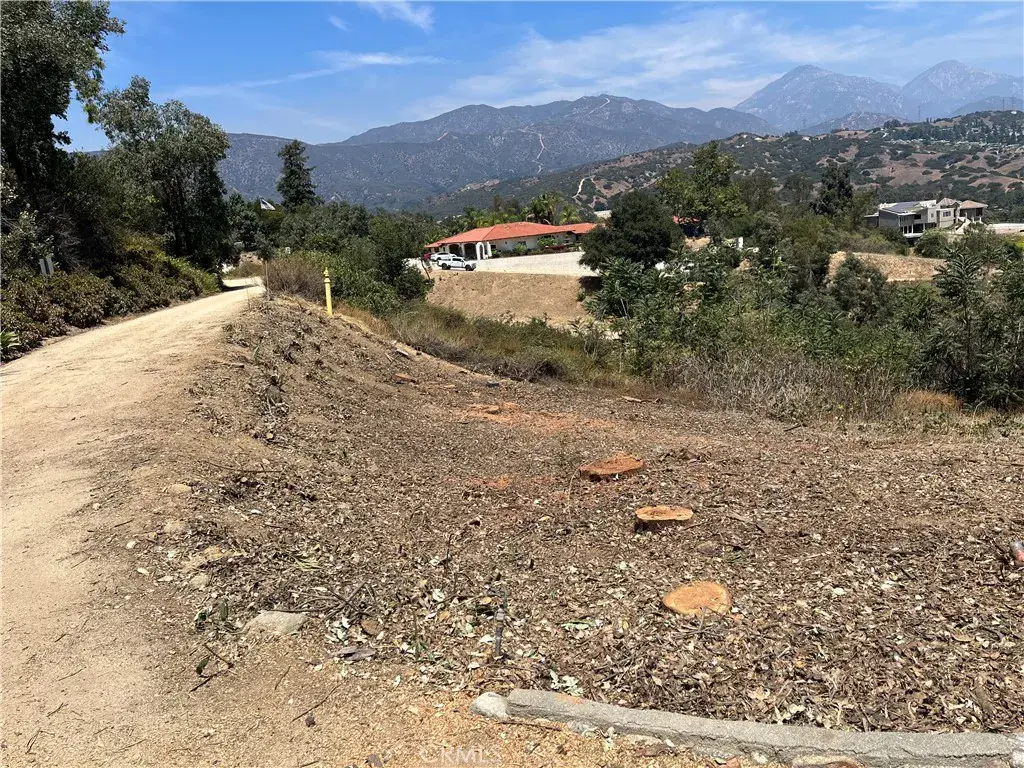 1 acre parcel, mostly square, with slight slope with panoramic view of the Inland Empire. The lot is located in a 20+ residential rustic community with lots trees, bushes, etc. all utilities near site but no sewer and minimum development of 1,000 SF. The property has easy access to 210 Fwy