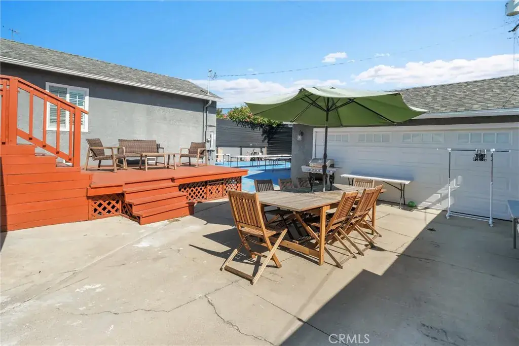 The expansive family room opens onto a generous deck, seamlessly extending your living space outdoors—perfect for gatherings under the California sun. In the backyard, enjoy your own private basketball court and a converted garage that offers flexible space for a home office, gym, or guest suite.