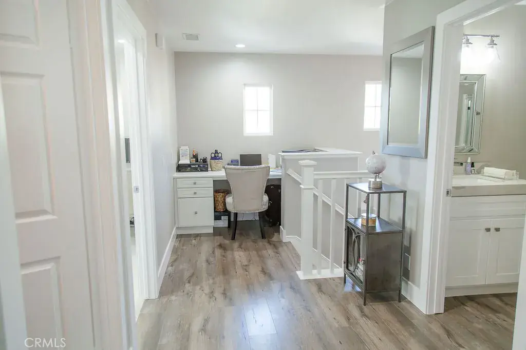 Upstairs, all bedrooms are located on the second level, including a spacious primary suite with a well-appointed ensuite featuring a soaking tub, separate shower, dual sinks, and a large walk-in closet. The second floor also includes a dedicated laundry room with newer washer and dryer, along with a versatile hallway nook ideal for a home office or study area.