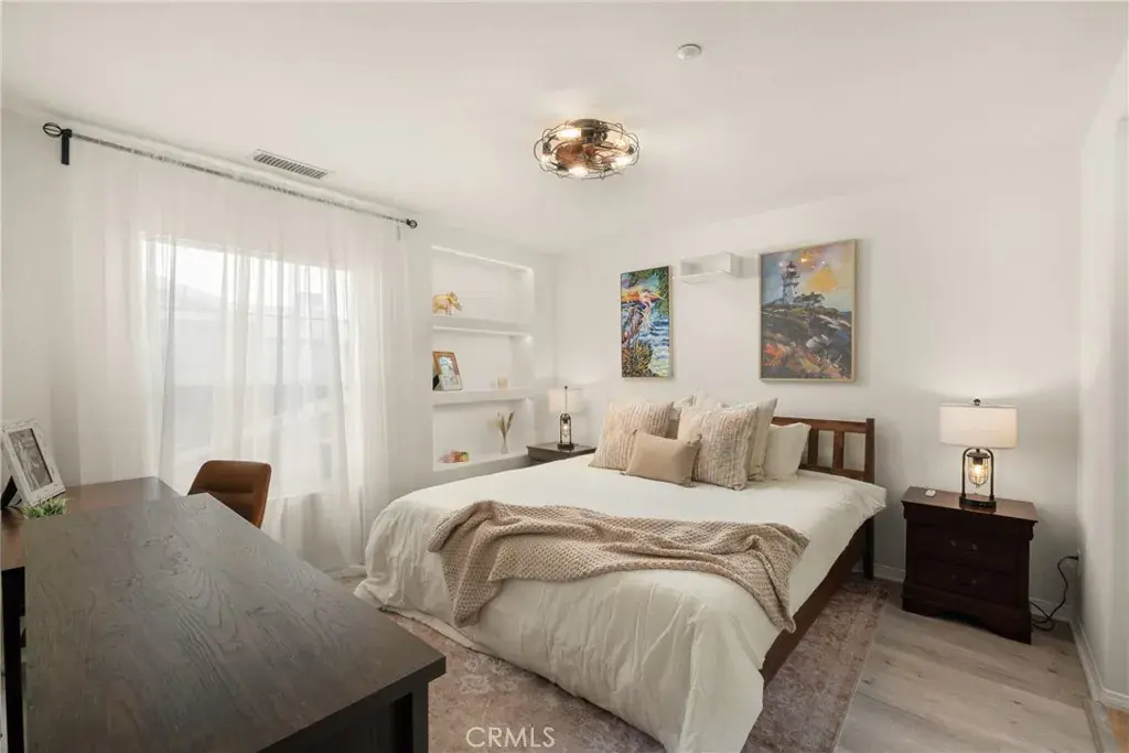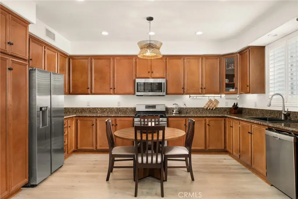 This highly upgraded and meticulously maintained end-unit townhome features 2 bedrooms, 2.5 bathrooms, and a 2-car attached garage with additional storage space. Step inside to a spacious living room featuring a custom fireplace, abundant natural light, and access to a private balcony — perfect for relaxing or entertaining. The open-concept kitchen is beautifully appointed with upgraded cabinetry, granite countertops, recessed lighting, and stainless steel appliances, seamlessly connecting to the living room. Throughout the home, you’ll find new laminate flooring, plantation shutters, and custom window coverings for a fresh, modern feel. The large primary suite boasts decorative shelving, a walk-in closet, dual vanities, and an oval soaking tub. A generous secondary bedroom includes its own full bathroom and a lovely view. Additional highlights include upgraded ceiling fans, tile flooring in the kitchen and baths, a spacious powder room, and a convenient upstairs linen closet. Enjoy the ease of direct access to a 2-car garage, plus the washer, dryer, and refrigerator are included. Located just one block from Ladera Ranch Elementary and Middle School, this home offers access to the incredible amenities of Ladera Ranch — including Founder’s Park, pools, clubhouses, tennis and basketball courts, skate park, water park, dog park, scenic trails, and year-round community events. High-speed internet is included in the HOA. *This property is available for rent starting 8/1/26.*