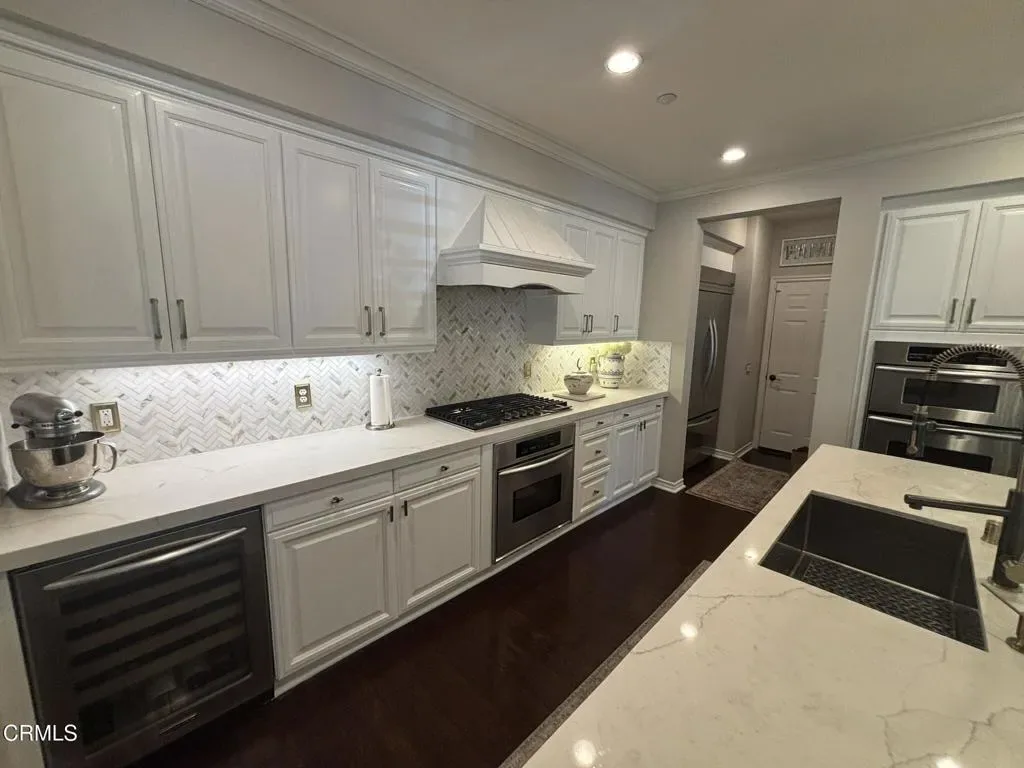 Through the exclusive gates of Covenant Hills, at the end of a quiet cul-de-sac, sits this gorgeous south-facing Castellina Plan 5 townhome offering the perfect blend of luxury, comfort, and indoor-outdoor living. This location is optimum!The newly upgraded kitchen is a showstopper, featuring stunning quartz countertops and an oversized 8′ x 5′ waterfall island, large walk-in pantry, wine cooler, double ovens, microwave, dishwasher, and an oversized built-in refrigerator. The kitchen also provides direct access to the two-car garage for ultimate convenience.The main level showcases a beautiful open floor plan with hardwood floors throughout, seamlessly connecting the living room, dining room, kitchen, and family room to create an expansive great-room feel. Four sets of French doors open to the backyard, enhancing the home’s effortless indoor/outdoor lifestyle.The private backyard sits on an oversized corner lot and features stamped and color-stained concrete, a covered patio, custom fireplace, and a built-in BBQ complete with stone countertops, sink, and refrigerator — ideal for entertaining.The spacious primary suite offers two separate walk-in closets with custom built-ins, a private balcony, and an oversized spa-style bath with dual separate vanities and a large walk-in shower. A downstairs bedroom with adjacent full bath provides flexibility for guests or multi-generational living, while two additional upstairs bedrooms share a full bath. Each bedroom includes plantation shutters, ceiling fans, and new wood flooring.Located within the 24-hour guard-gated enclave of Covenant Hills, just a block from the resort-style Covenant pool, tennis and pickleball courts, and newly remodeled clubhouse and a block below one the inviting parks , this beautifully detailed home offers exceptional lifestyle living in one of Ladera Ranch’s most desirable communities.