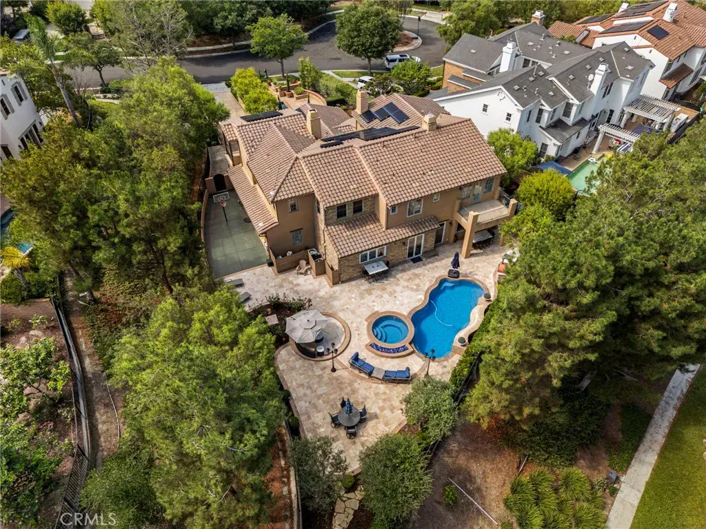 Gorgeous former model home in Covenant Hills with nearly 15,000 sqft lot, casita & resort-style yard. Welcome to this exquisite 5-bedroom, 5.5 bathroom K. Hovnanian Capistrano masterpiece set within the guard-gated community of Covenant Hills. Situated on a rare 14,976 sqft lot, this nearly 5000 sqft former model home offers several recent updates, privacy, luxury and unmatched indoor-outdoor living. Designed for both entertaining and everyday comfort, this beautifully upgraded home features a versatile loft, 4 balconies and a 3-car garage with built-in cabinetry and water filtration. The spacious open-concept floor plan is flooded with natural light and adorned with custom features: hardwood and tile flooring, bi-fold door and windows, plantation shutters, electric window treatments, designer lighting, ceiling fans, wine refrigerator, and a custom fireplace. The chef’s kitchen is a showstopper with luxury stainless steel appliances, Wolf gas range, quartz countertops, glass-front refrigerator/freezer, an elegant custom backsplash and custom bi-fold windows to open the home to the yard. Step outside to your private resort-style backyard featuring a sparkling pool & spa, outdoor shower, fire features, built-in BBQ with Teppan grill, ½ basketball court, dog run, and newly landscaped grounds with custom built-in tables. The spacious primary suite includes a private balcony, elevated ceilings, custom bathroom, and built-in walk-in closets. Additional upstairs bedrooms are generously sized, along with a versatile loft. A tranquil outdoor courtyard with fireplace connects the main home to a detached casita, complete with kitchenette, full bath, living space, walk-in closet and private entrance — perfect for guests, in-laws or a private office. Other highlights include a main-level laundry room, abundant storage and leased solar for energy efficiency. Enjoy world-class amenities including a newly renovated water park, four resort-style pools, tennis and pickleball courts, scenic walking trails, and proximity to top-rated schools, shopping, dining, and all that South Orange County has to offer. Don’t miss this rare opportunity to own one of the finest homes in Covenant Hills set in the rolling hills of South Orange County!
