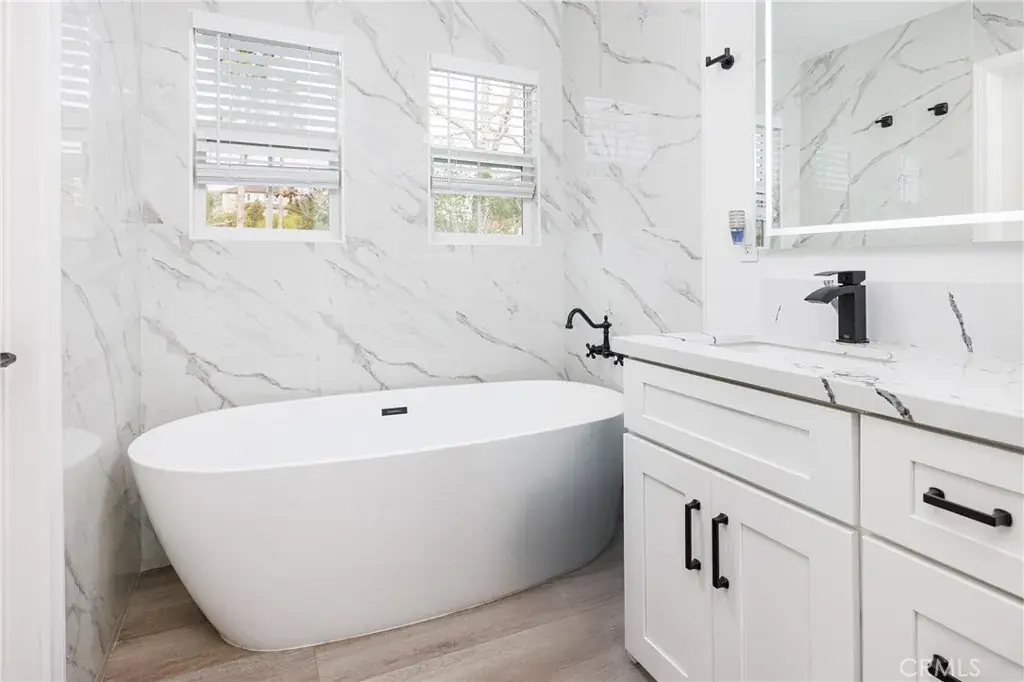 Beautiful Savannah 3-bedroom, 2.5-bath residence remodeled from top to bottom. Luxury vinyl plank flooring extends throughout the home and up the staircase. The modern kitchen features ceiling-height white shaker cabinetry, subway tile back splash, stainless appliances and quartz countertops. All bathrooms have been upgraded with quartz surfaces and designer tile. This desirable end property offers a private yard with scenic park views and is ideally located near Ladera’s award-winning schools and parks.